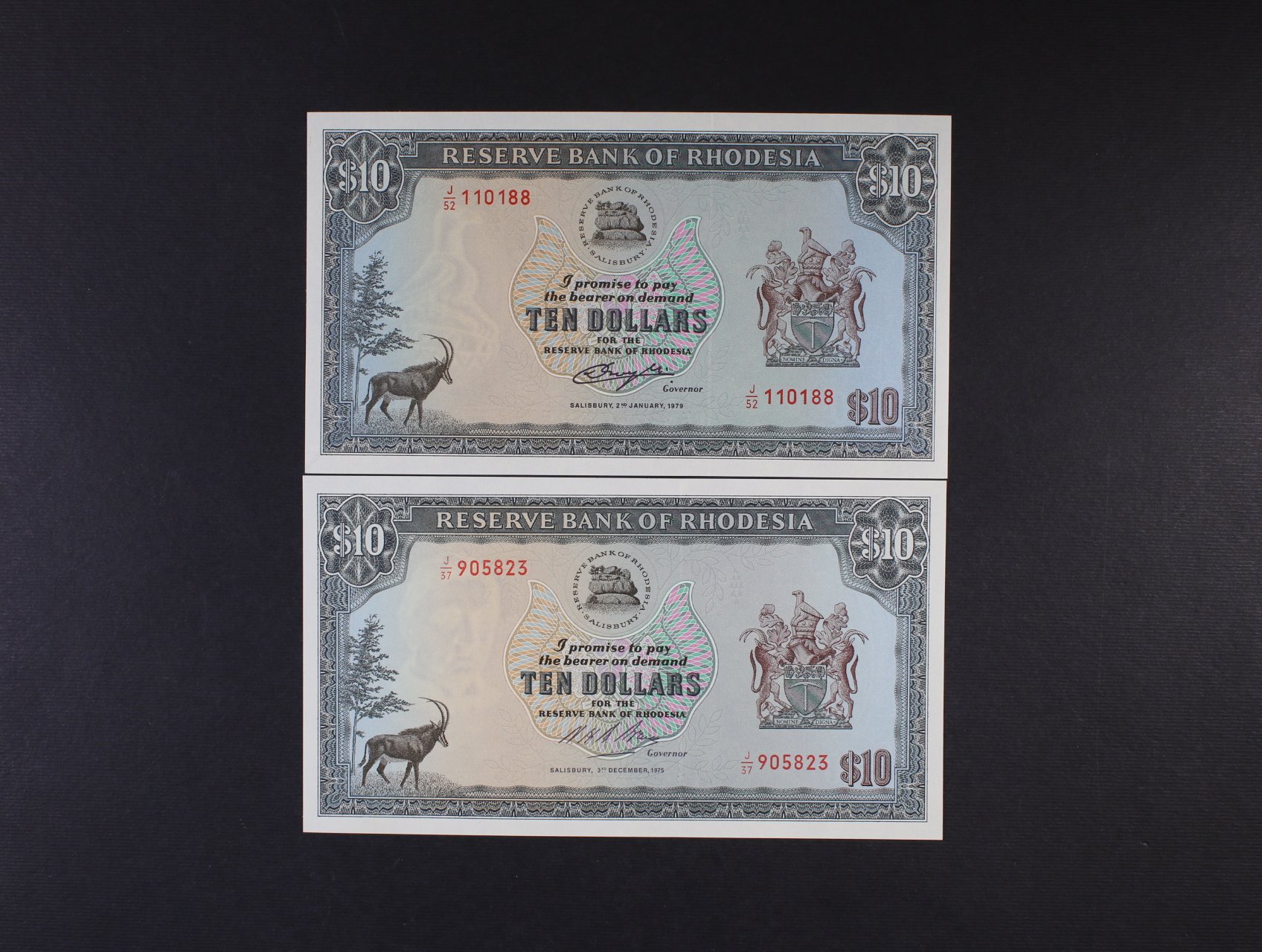 10 Dollars 1975 série J/37, 1979 série J/52, Pi. 37, 41, BNB. B110h, k, 2 kusy