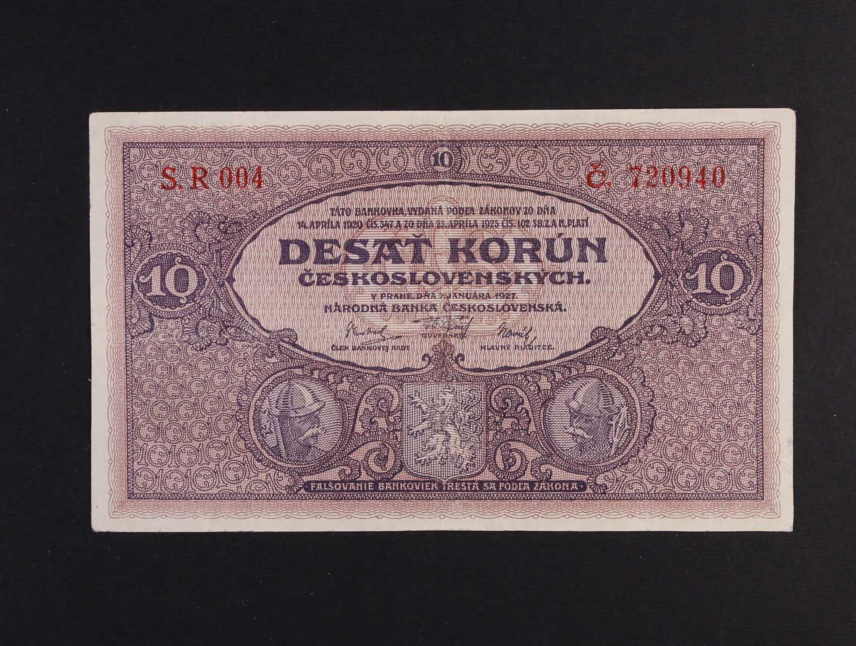 10 Kč 2.1.1927 série R 004, Ba. 22b, Pi. 20a