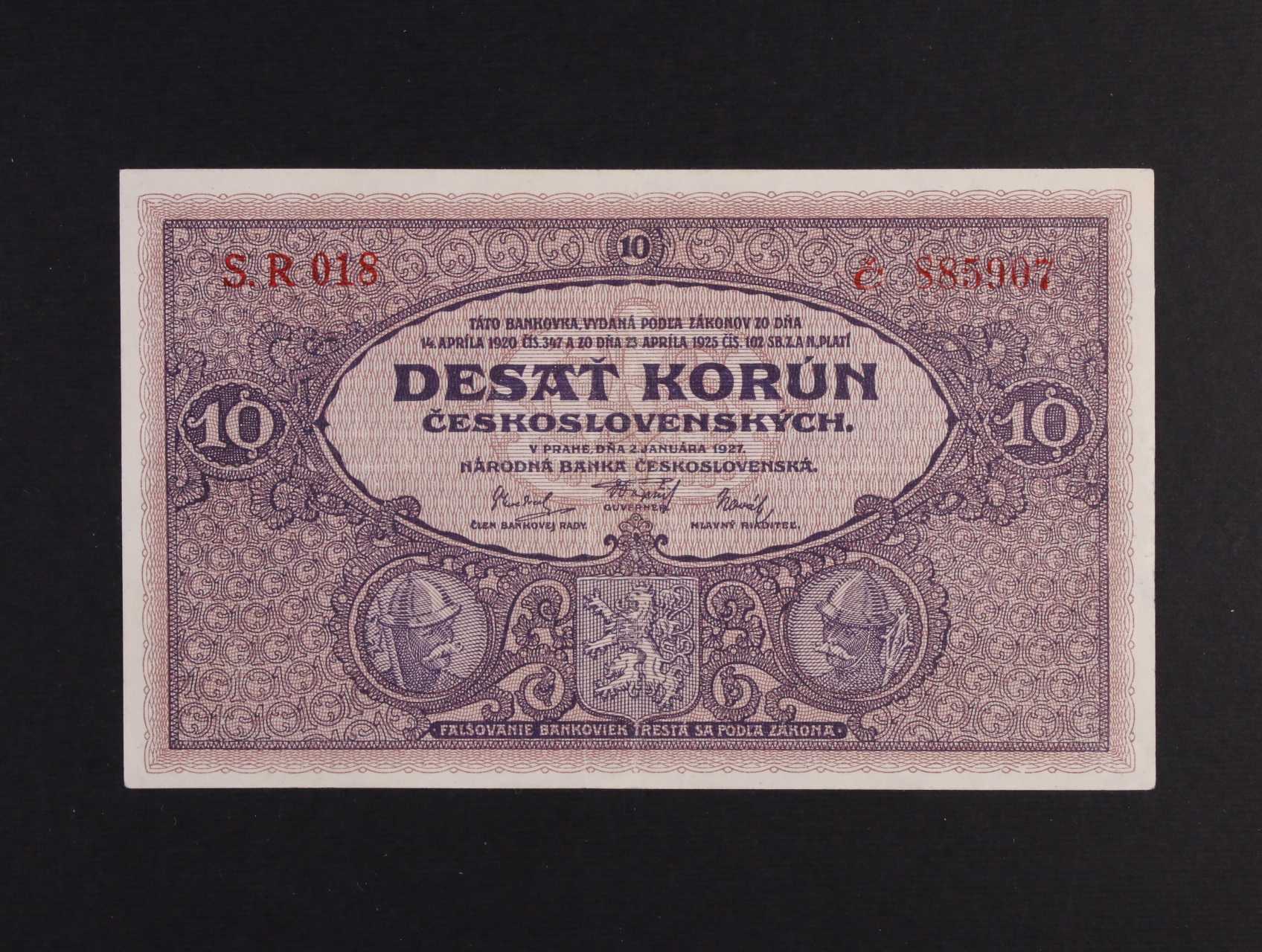 10 Kč 2.1.1927 série R 018, Ba. 22b, Pi. 20a