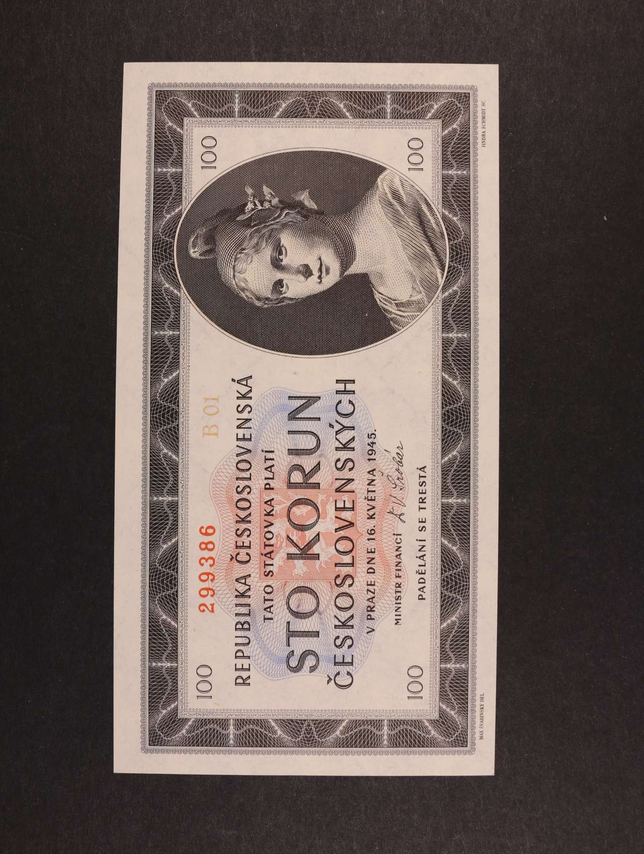 100 Kčs 16.5.1945 série B 01, Ba. 77a1, Pi. 67a