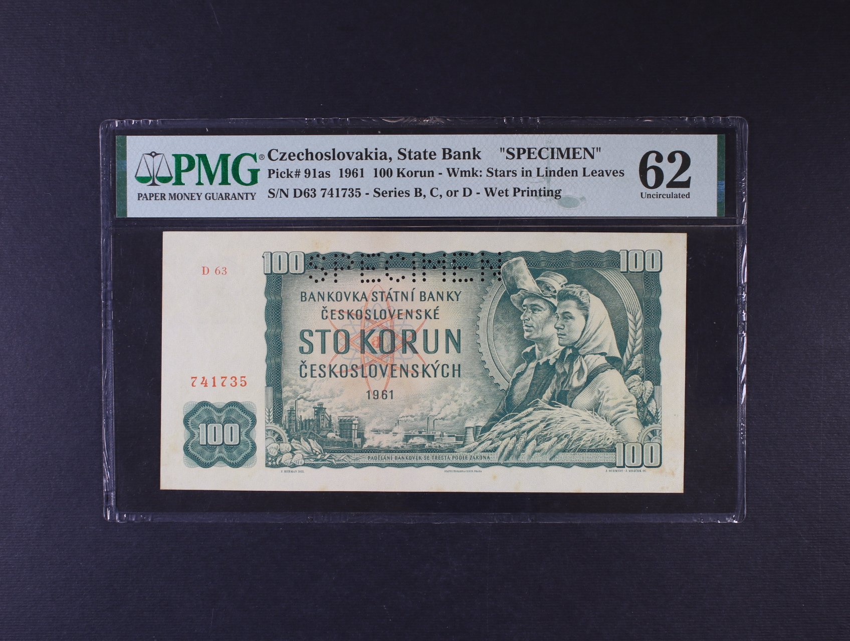 • 100 Kčs 1961 série D 63 bankovní vzor s perf. SPECIMEN, Ba. 98a2, Pi. 91s, He. 101 V1b, PMG 62