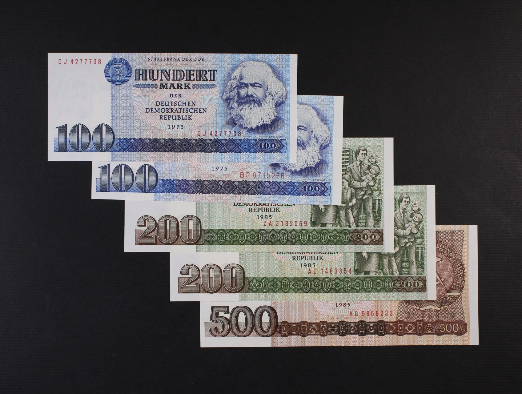 100 Mark 1975 série BG, CJ, 200 Mark 1985 série AC, ZA Replacement, 500 Mark 1985 série AG, Ro. 363, 364, 365, Grab. DDR-25a, 25c, 26a, 26b, 27a, 5 kusů