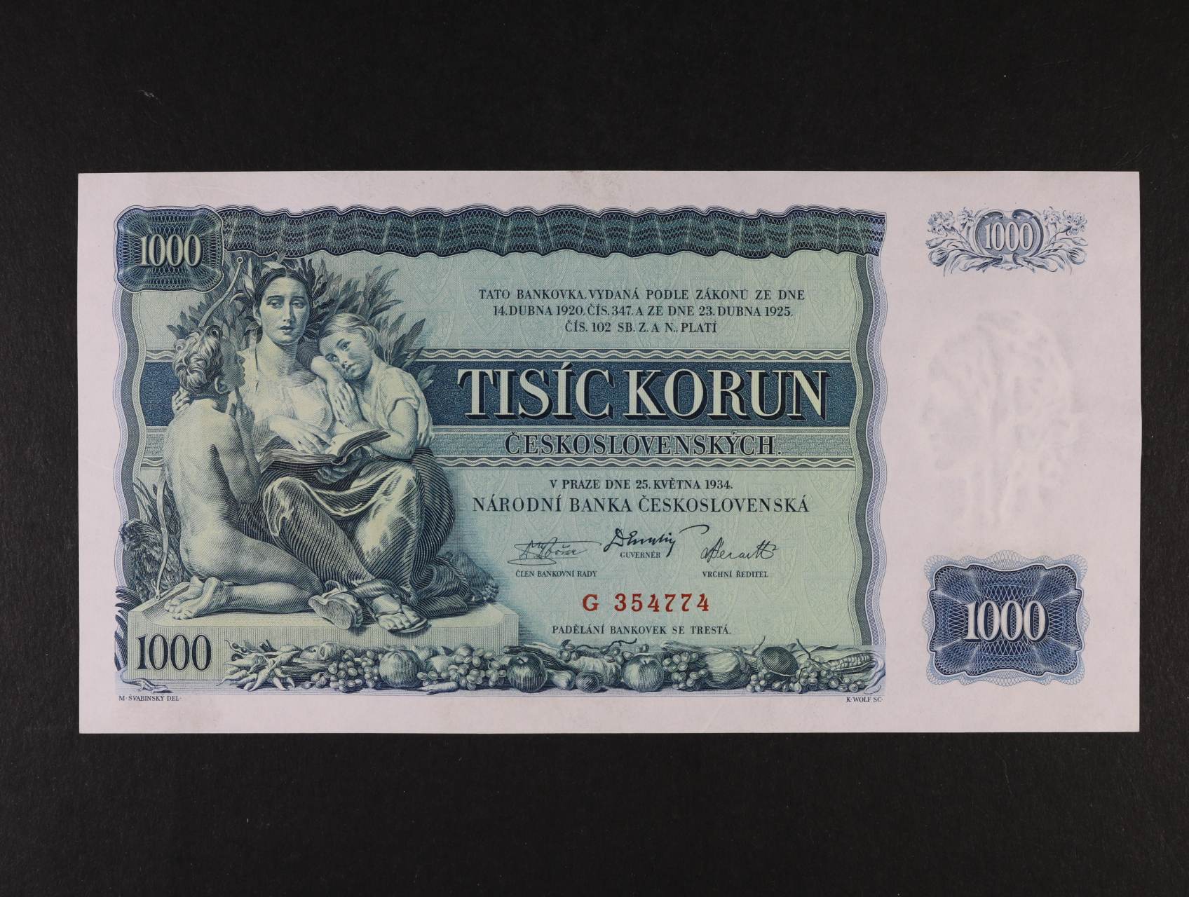 • 1000 Kč 25.5.1934 série G, Ba. 27, Pi. 26a
