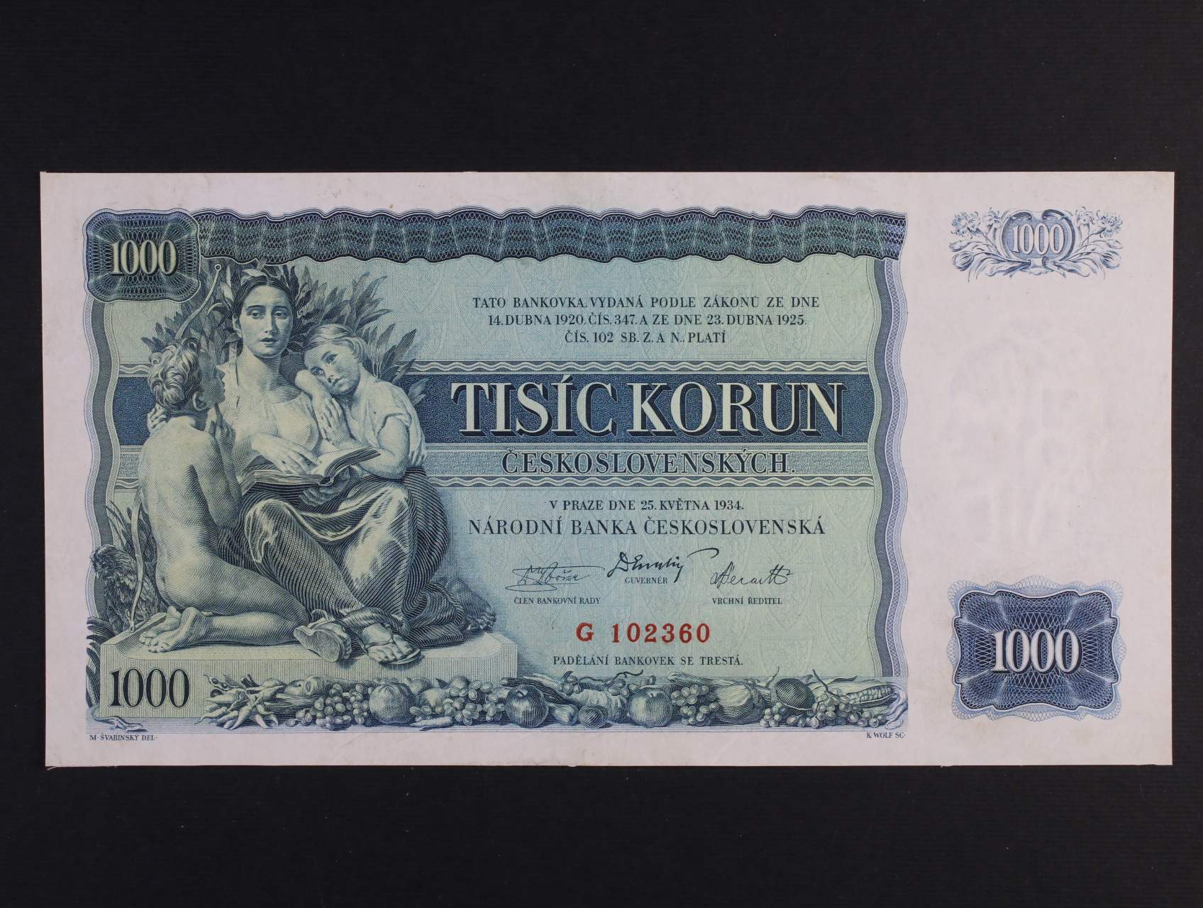 • 1000 Kč 25.5.1934 série G, Ba. 27, Pi. 26a
