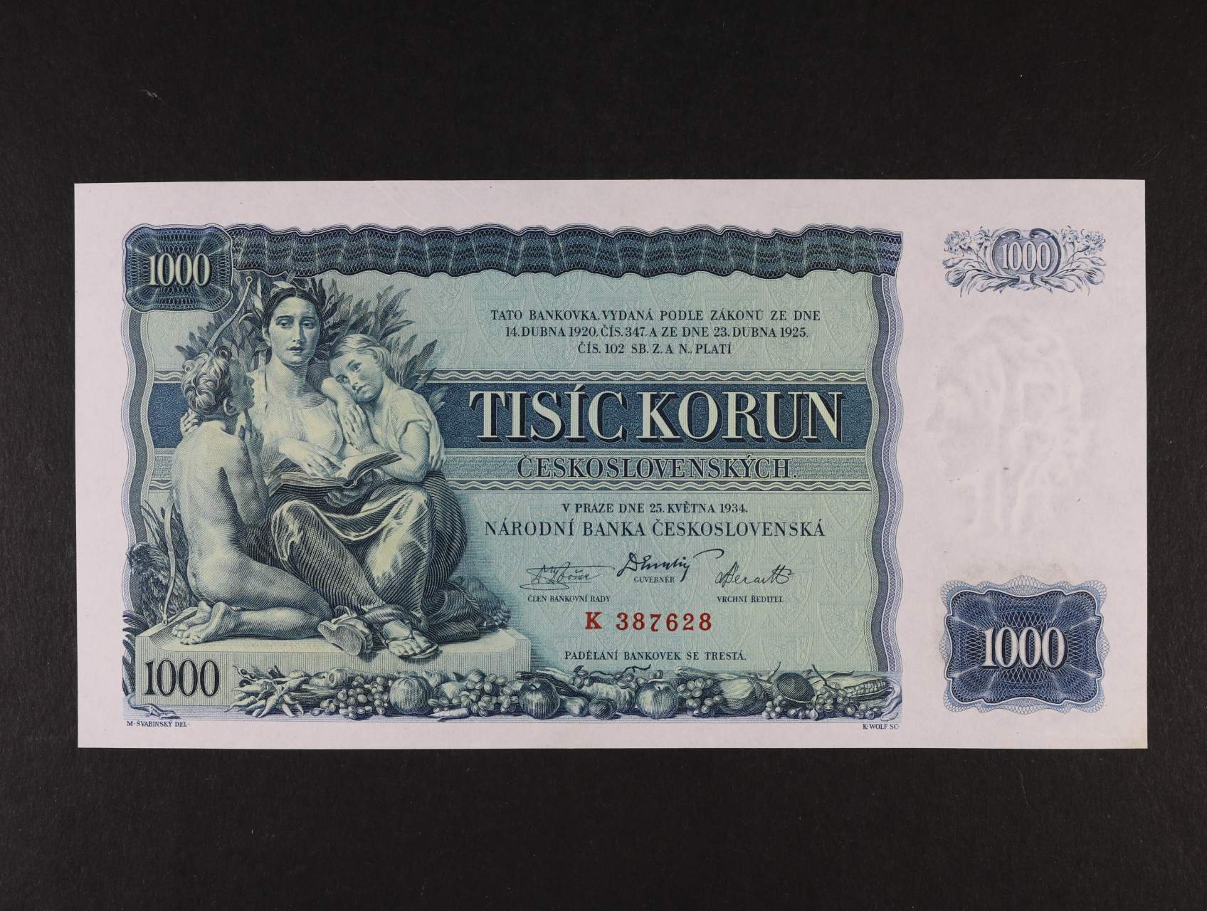 • 1000 Kč 25.5.1934 série K, Ba. 27, Pi. 26a