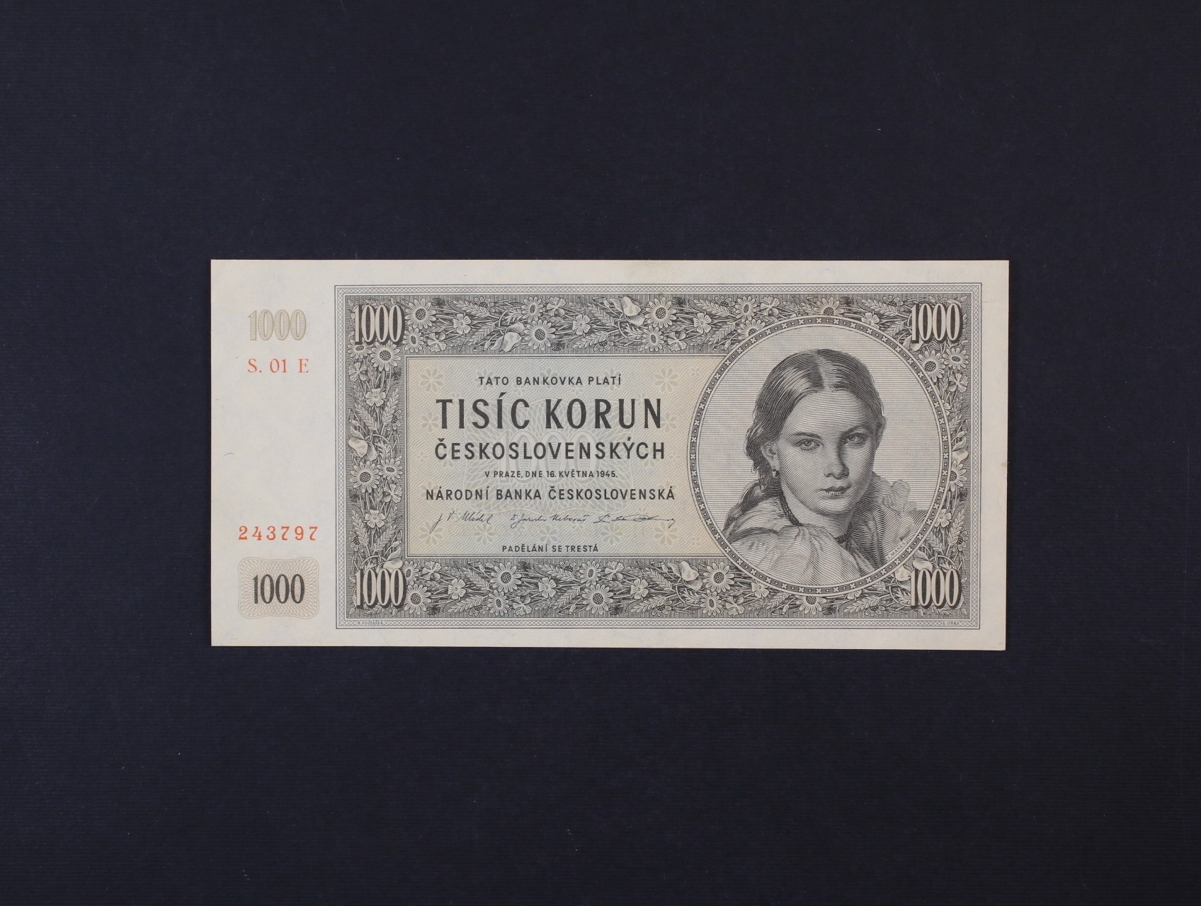 1000 Kčs 16.5.1945 série 01 E, Ba. 78d, Pi. 74d, první série