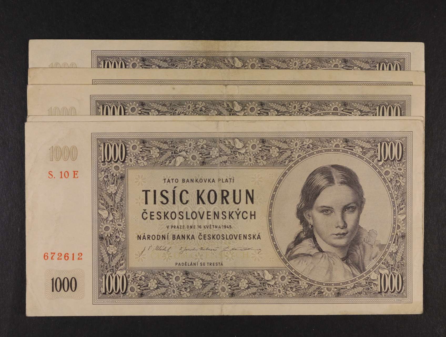 • 1000 Kčs 16.5.1945 série 10 E, 20 E, 21 E, 24 E, 27 E, Ba. 78d, Pi. 74d, celkem 5ks
