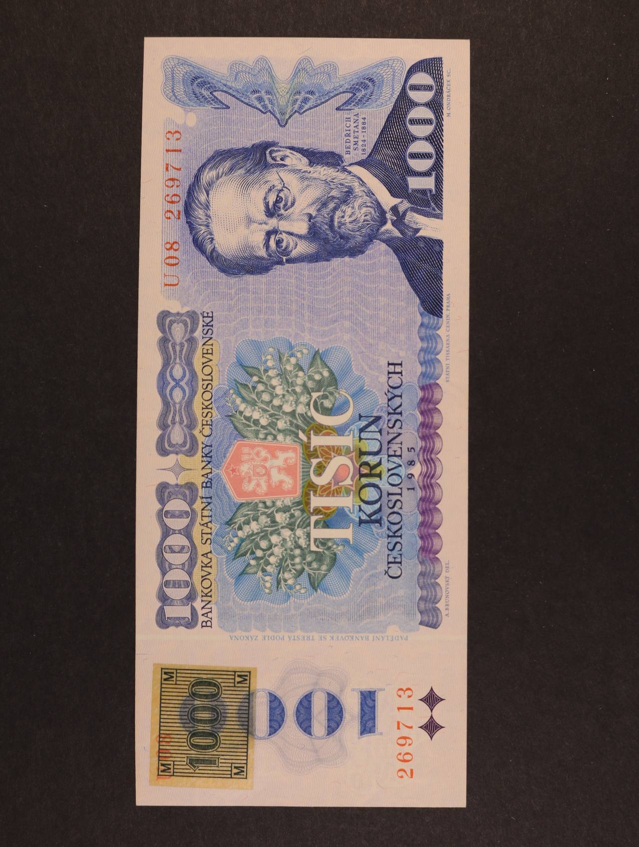• 1000 Kčs/Kč 1985/93 série U 08 kolkovaná lepeným kolkem, Ba. CZ3a2, CZ10a