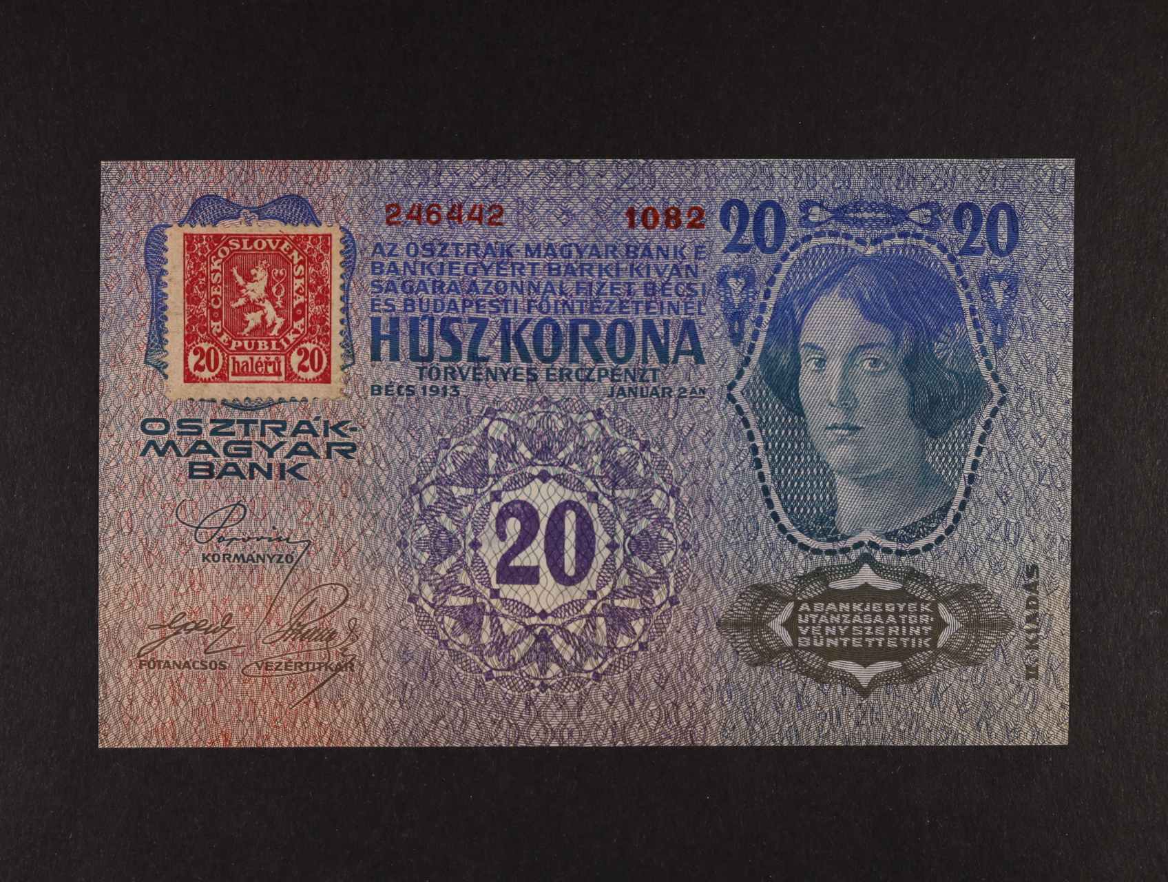 20 K 2.1.1913 II.vydání kolkovaná série 1082, Ba. 3, Pi. 2A