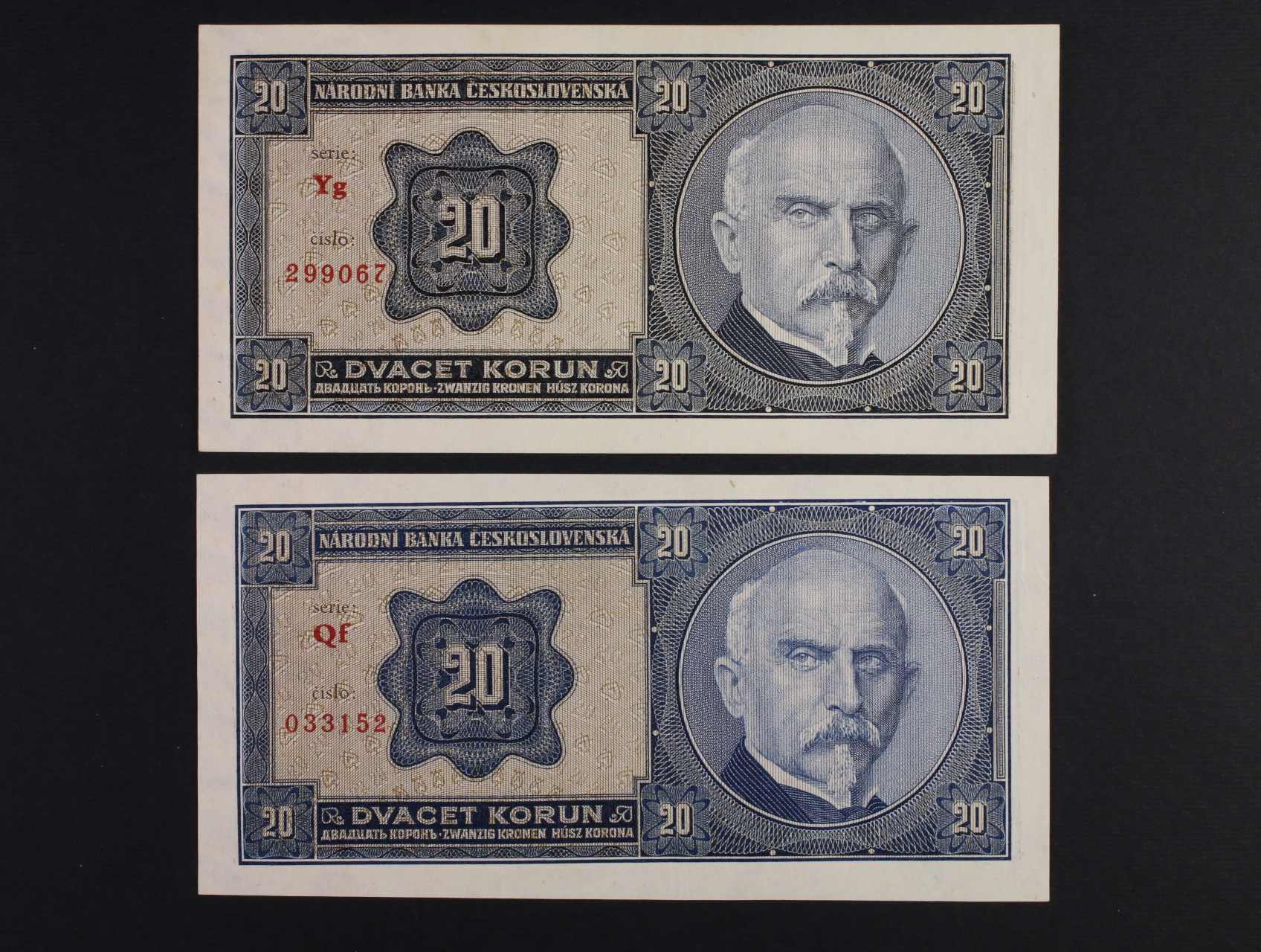 20 Kč 1.10.1926 série Qf a Yg, Ba. 21b2, Pi. 21a, 2 ks