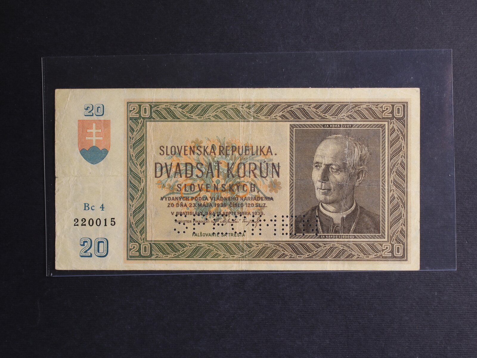 20 Ks 15.9.1939 série Bc 4, perf. SPECIMEN dole, Ba. 47a, Pi. 5s
