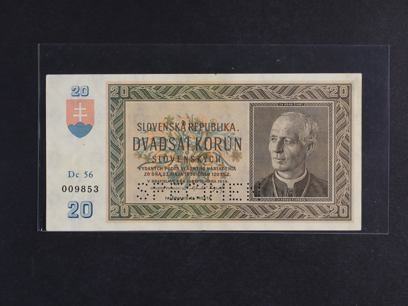 20 Ks 15.9.1939 série Dc 56 s perf. SPECIMEN dole, Ba. 47b, Pi. 5s, He. 47a2 S2