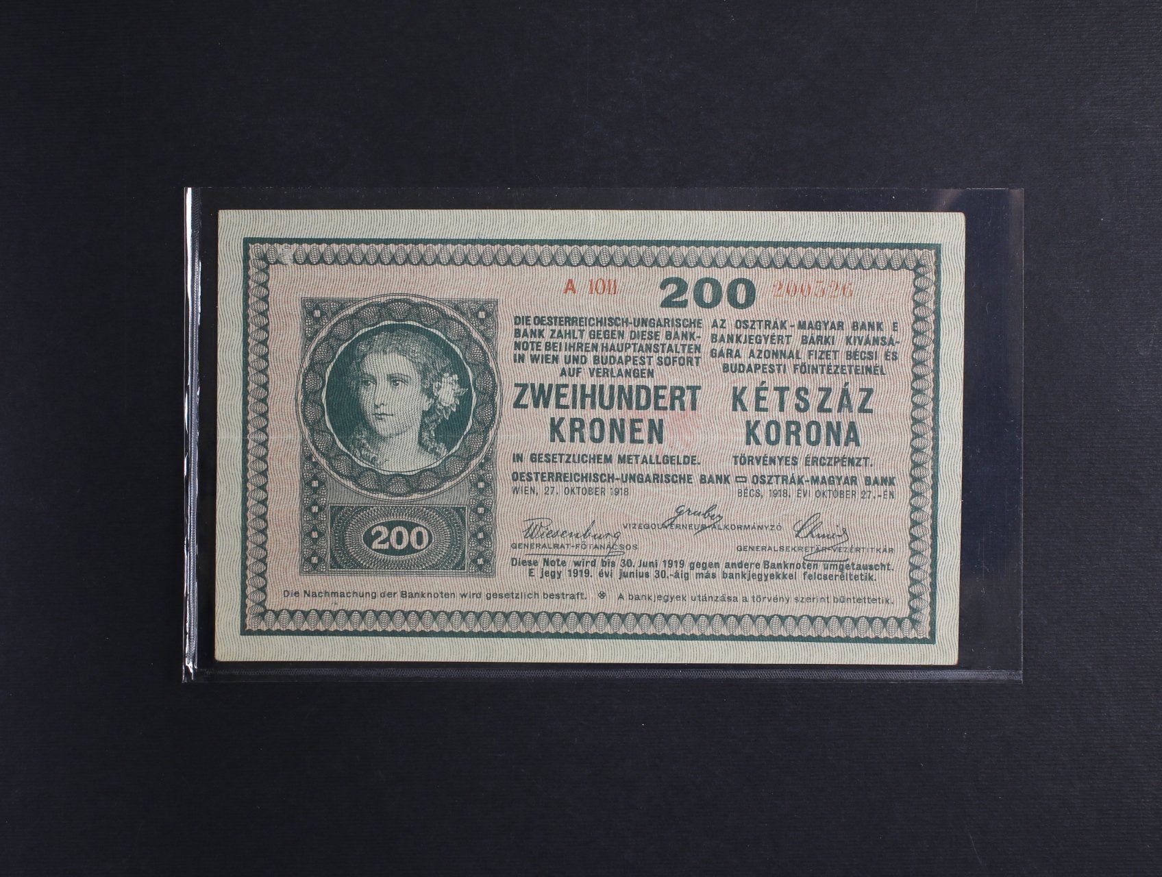 • 200 K 27.10.1918 série A 1011, bez rastru na R, Ri. 445, Ba. RU 13a, He. RU 18a