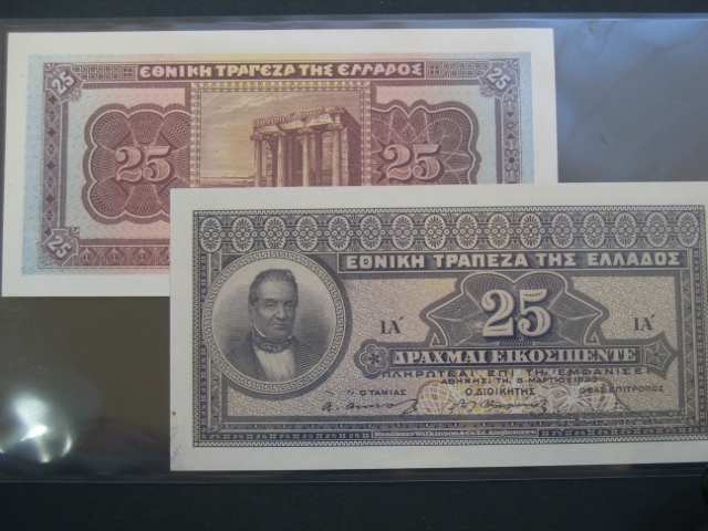 25 Drachma 1923 barevné zkoušky líce a rubu bez série a čísla, 1x perf. SPECIMEN, velmi vzácné, 2 ks, Pi. 71