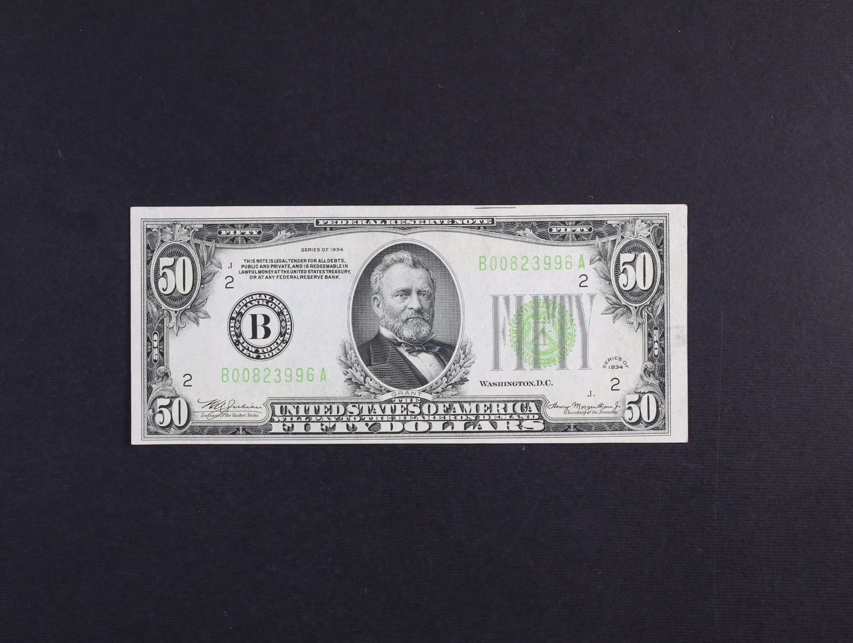 50 Dollars 1934 (B New York / New York) Federal Reserve Note, světle zelená pečeť, Pi. 432L