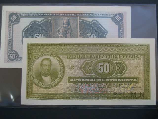 • 50 Drachma 1923 barevné zkoušky líce a rubu bez série a čísla, 1x perf. SPECIMEN, velmi vzácné, 2 ks, bez přetisku NEON Pick neuvádí
