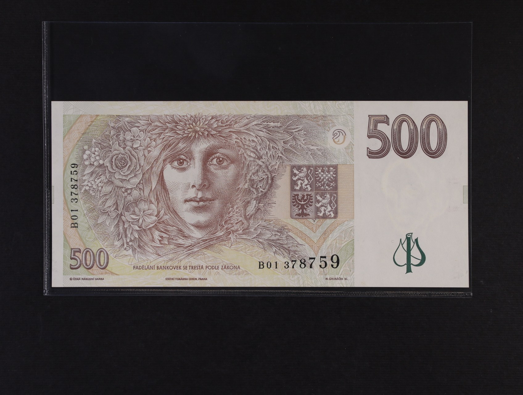 • 500 Kč 1995 série B 01, Ba. CZ 13, Pi. 14a, první série