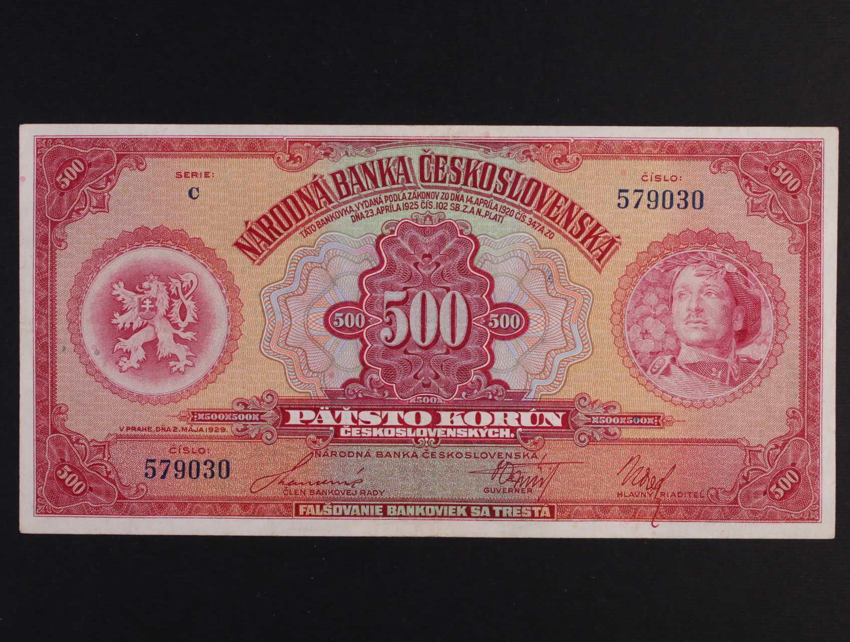 • 500 Kč 2.5.1929 série C, Ba. 23c, Pi. 24a