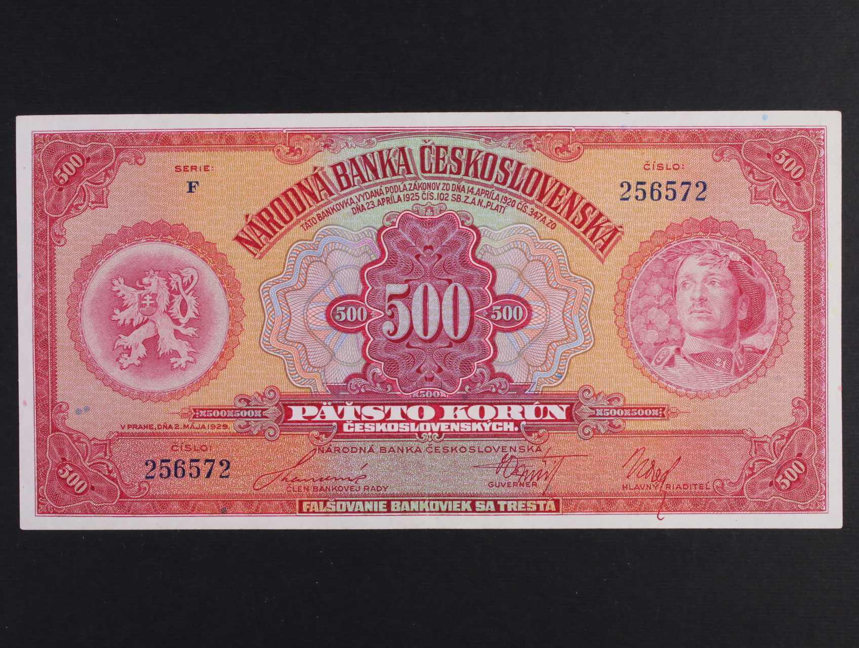 500 Kč 2.5.1929 série F, Ba. 23c, Pi. 24a
