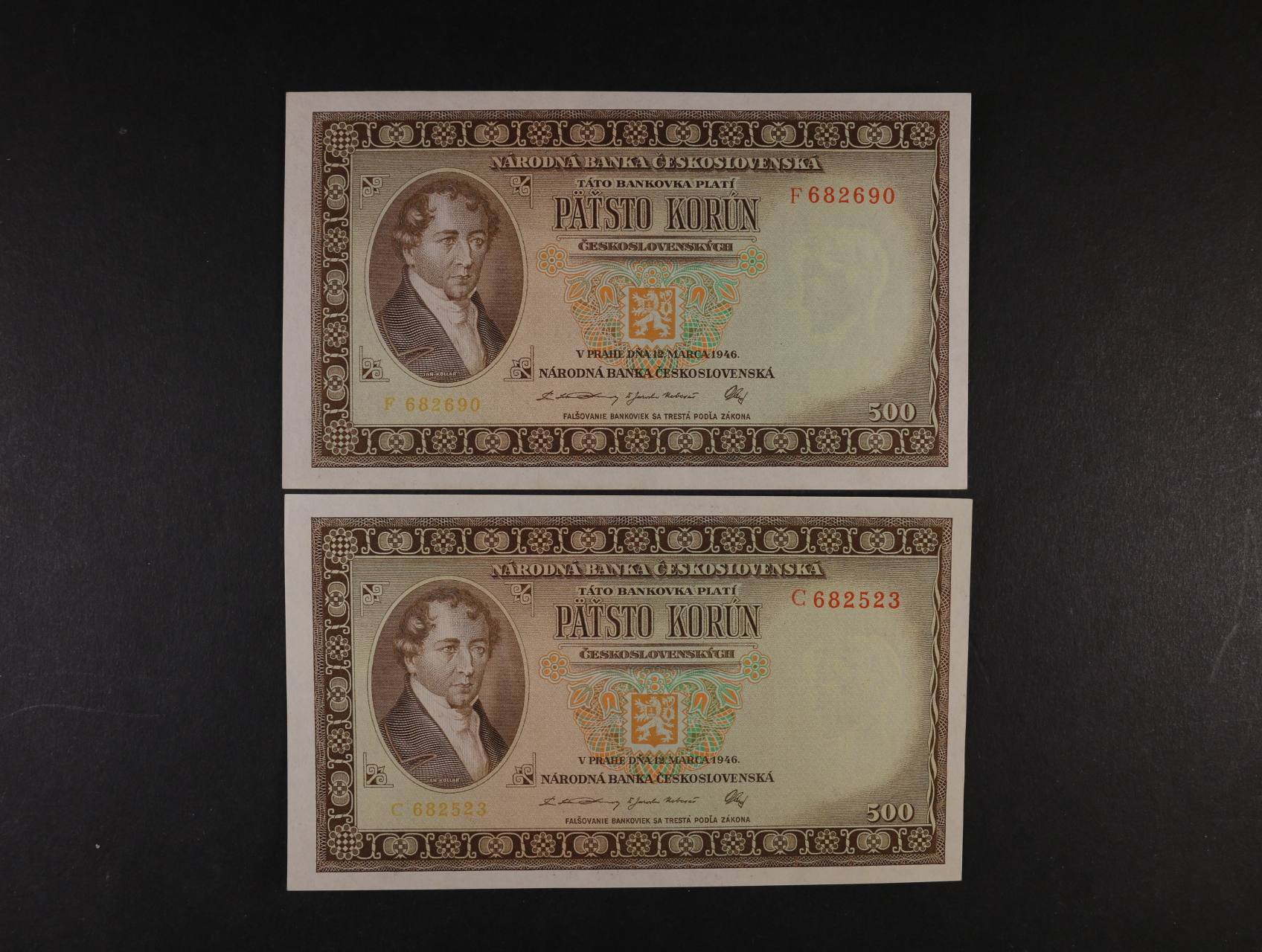 • 500 Kčs 12.3.1946 série C, F, Ba. 80a, Pi. 73a, 2ks