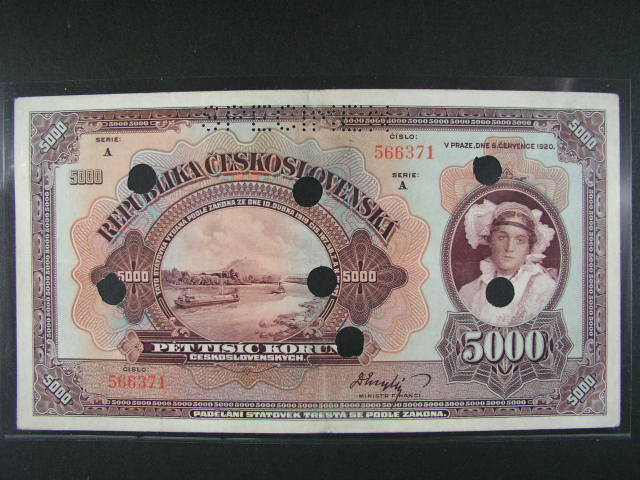 5000 Kc 6.7.1920 serie A, perf. SPECIMEN + 5x perf. otvor, Ba. 17a, Pi. 19s