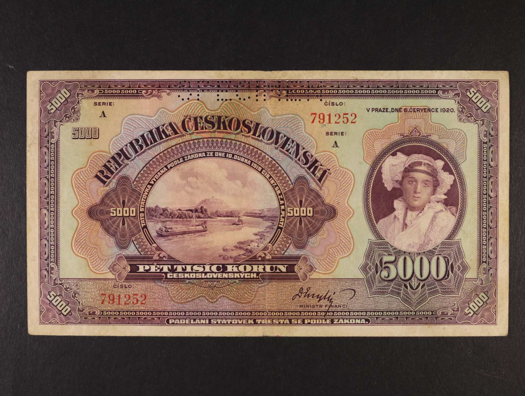 • 5000 Kč 6.7.1920 série A s perf. SPECIMEN, Ba. 17a, Pi. 19s