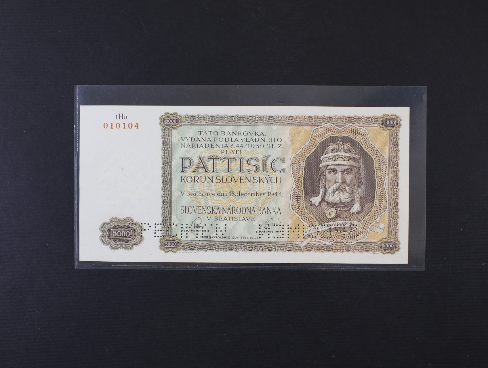 • 5000 Ks 18.12.1944 série 1Ha, nevydaná, s 2x perf. SPECIMEN dole, Ba. N5, Pi. 14s