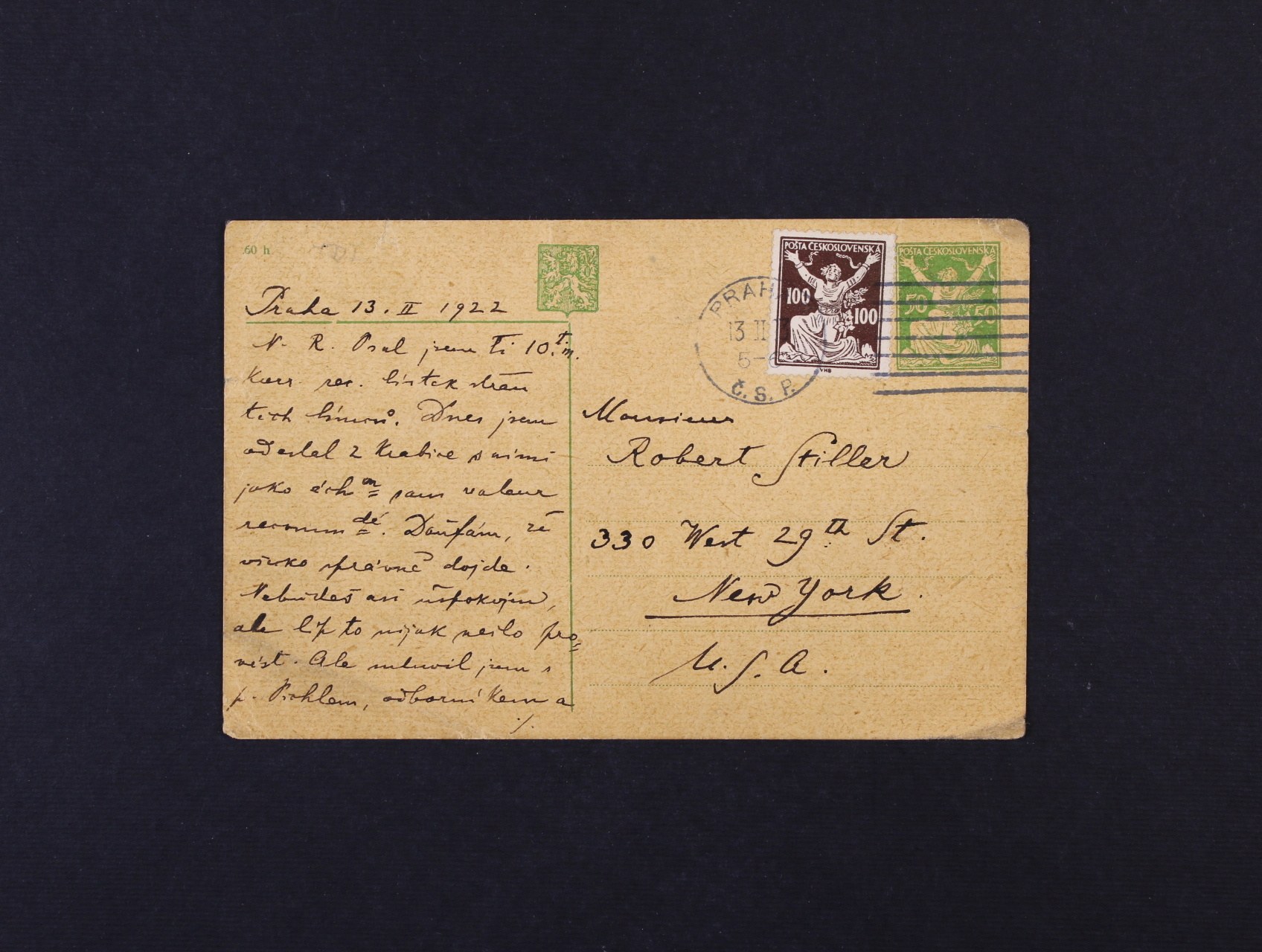 • CDV č. 24 s DV vajíčko v pase, TD 1, do New Yorku dofrank. zn. č. 158, pod. raz. PRAHA 13.2.23, stopy pošt. provozu, zajímavé, vzácné