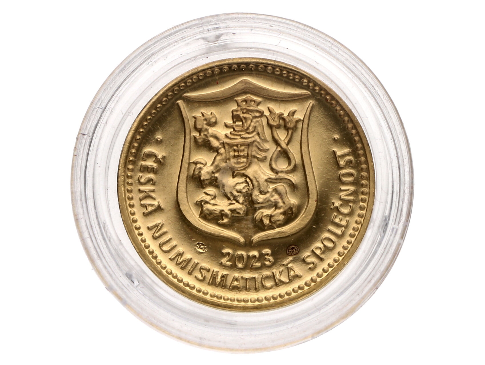 Česká republika 1993 - AU pamětní dukátová medaile 2023, 100 let Československých dukátů, ČNS Praha, Au 986/1000, 20 mm, 3,49 g., autor M. Vitanovský, certifikát, etue
