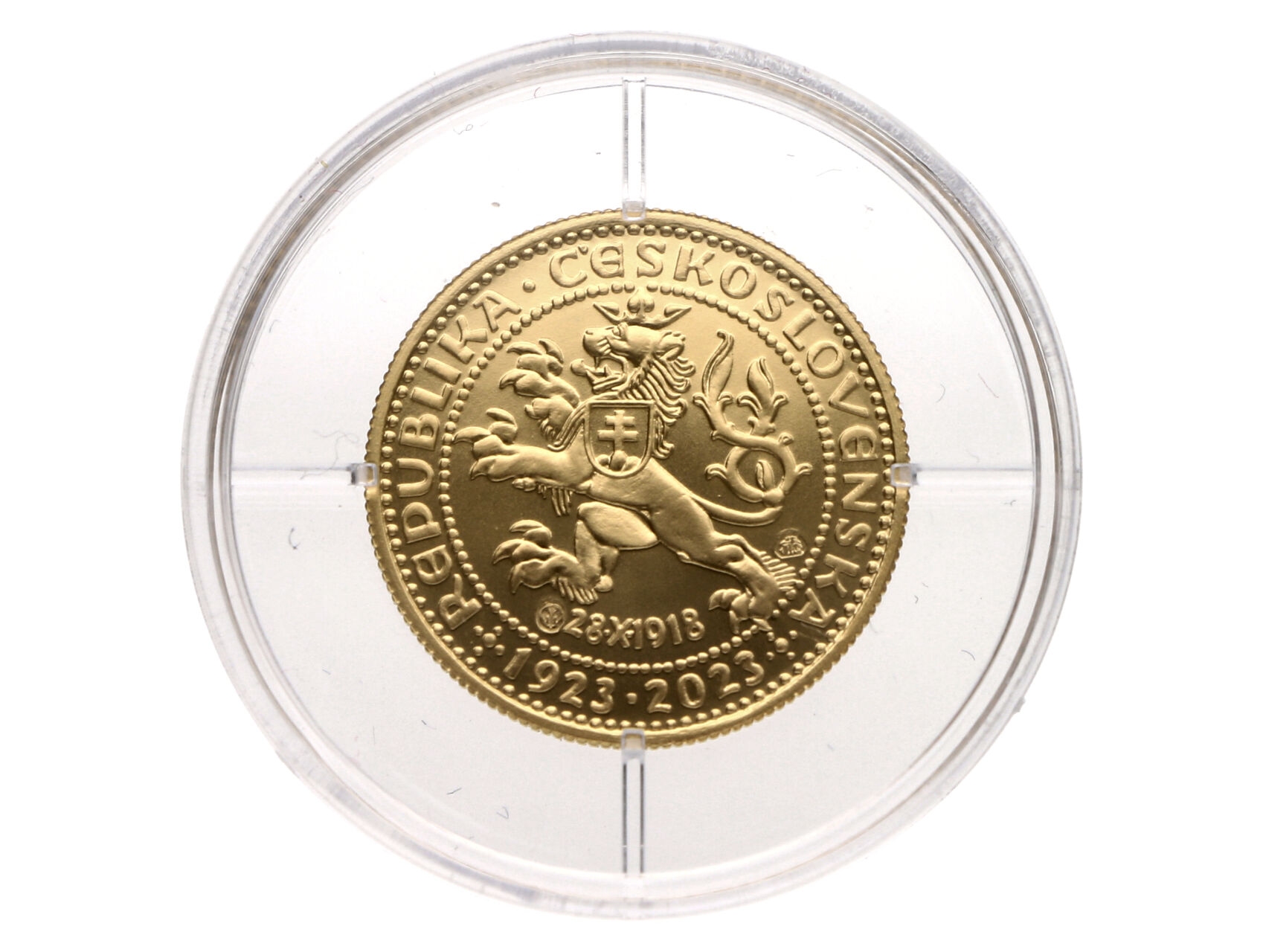 Česká republika 1993 - AU soutěžní návrh na první československé dukáty z roku 1923 - Josef Šejnost - dukát, Au 986/1000, 20 mm, 3,49 g., náklad 100 ks, certifikát, etue, Kremnica 2023