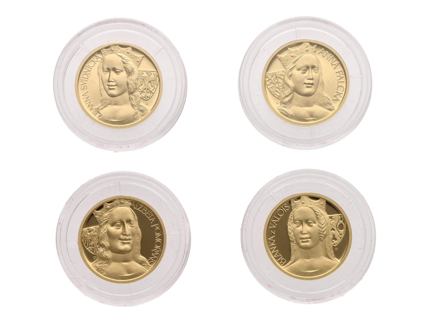 Česká republika 1993 - Česká mincovna, Jiří Dostál - sada 4 ks Au medailí 2008 - Karel IV. a jeho manželky, Au 999/1000, 12,56 g, náklad 200 ks, etue, certifikát, kvalita proof