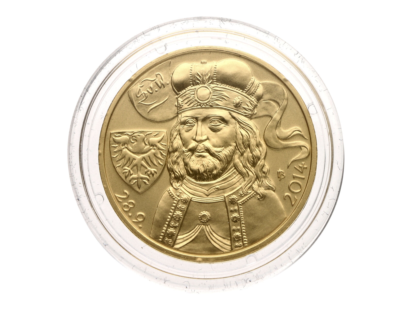 Česká republika 1993 - Pražská mincovna, Jaroslav Bejvl - 1/2 OZ medaile 2014, č. 01, Relikvie sv. Václava, Au 999/1000, 15,5 g, náklad 10 ks, číslováno na hraně, certifikát, etue