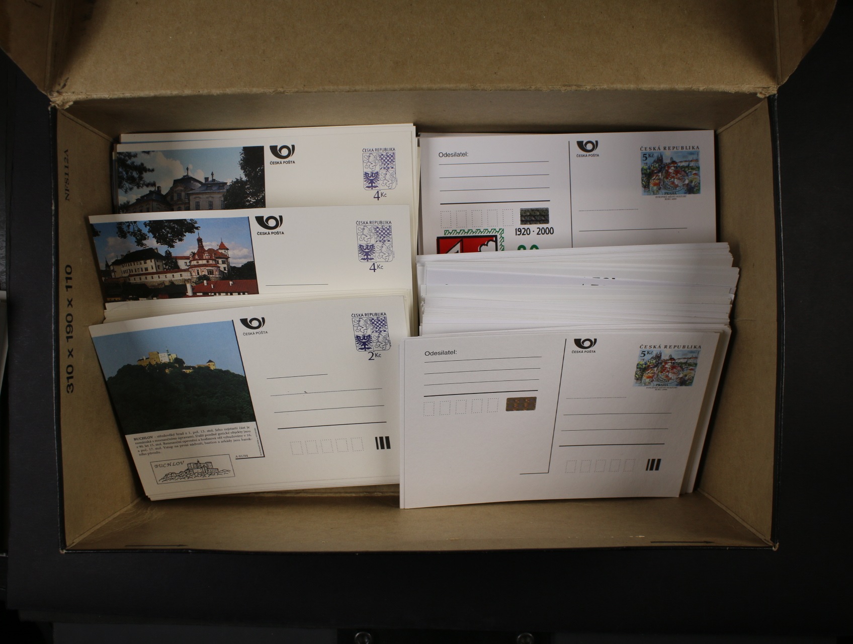 Česká republika - celiny - sbírka nepoužitých CDV s přítiskem, dále pohlednice s natištěnou zn., obsahuje mj. CDV č. 6/1-17 A + B, CDV č. 13/18-32 A + B, CDV 25/49-64 A + B, vše v nominální hodnotě cca 4000 Kč, uloženo v černé krabici