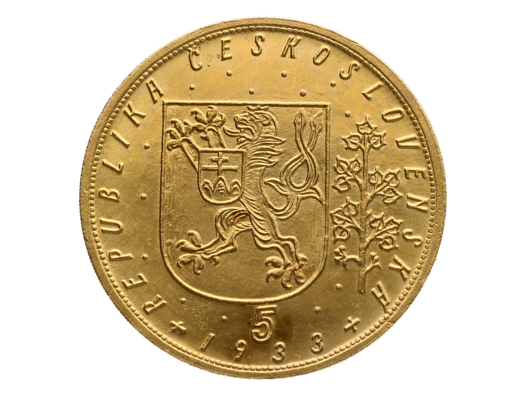 Československo 1918-1939 - 5 Dukát 1933, 17.45 g, Au 986/1000, raženo 1752 ks, N 18, Aurea 18