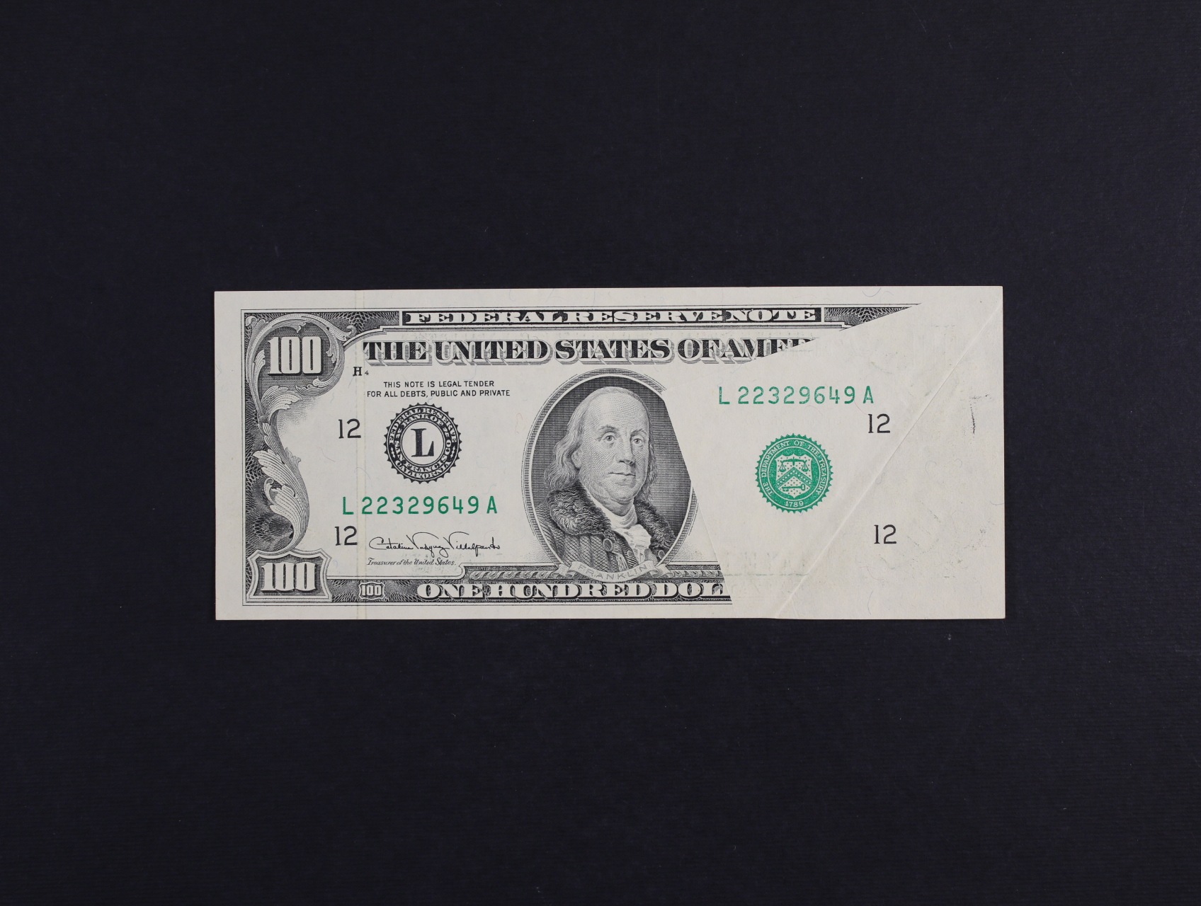 • chybotisk, 100 Dollars 1990 (L San Francisco / California) s velkou přeložkou a nedostem hlubotisku, Pi. 489