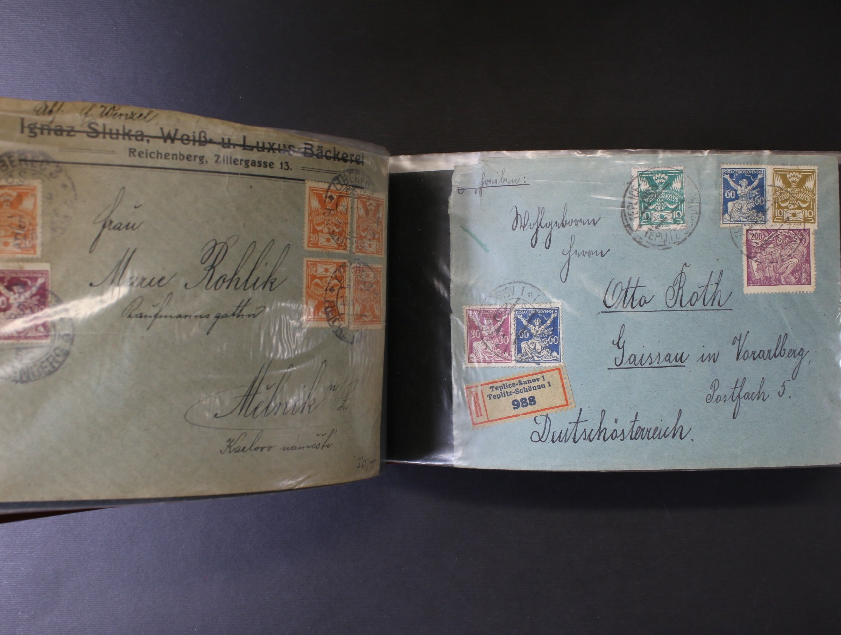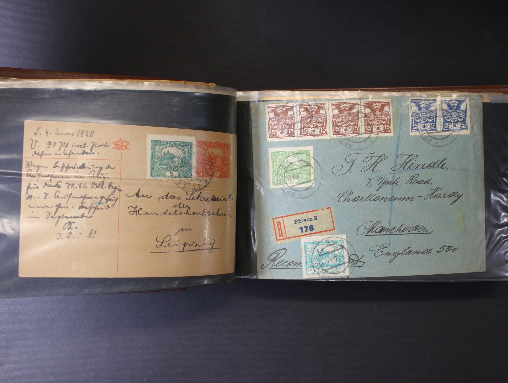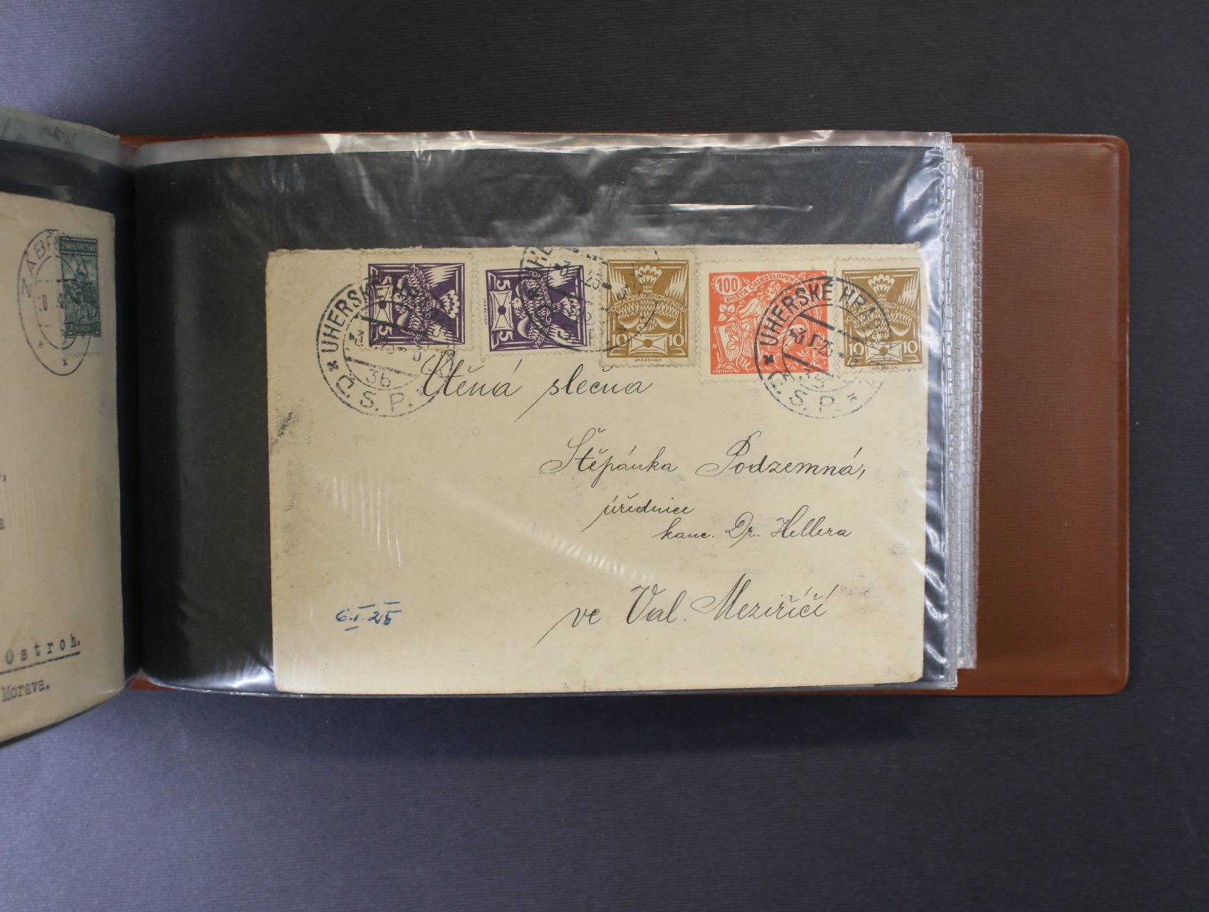 ČSR I - sbírka 90 ks celin a celistvostí z let 1918 - 1943, mj. RECO-EXPRES, zajímavé, pestré, násobné i jednozn. frankatury a raz., uloženo v hnědém zásobníku na dopisy