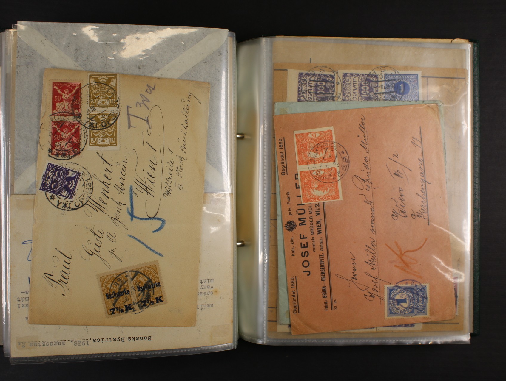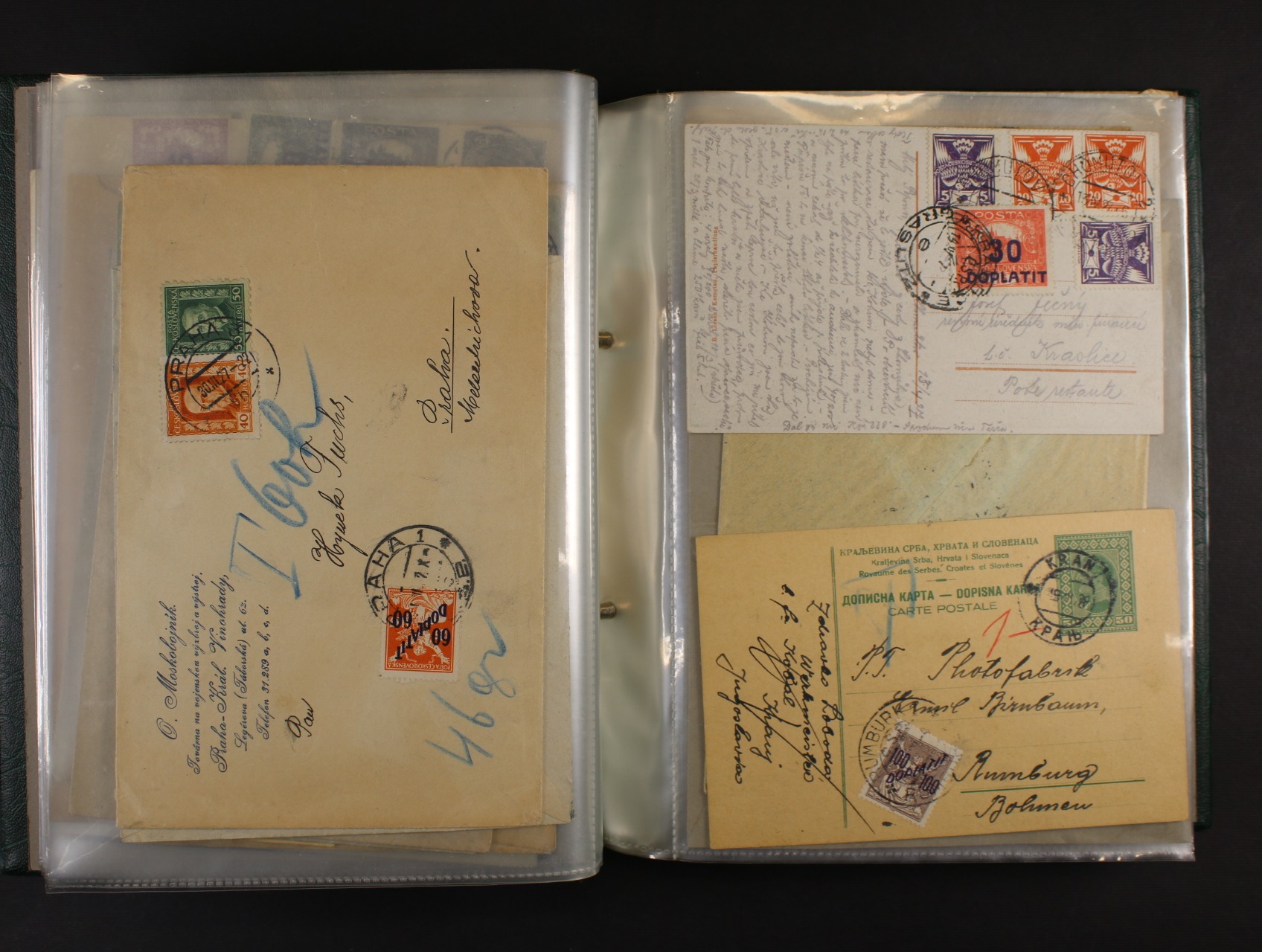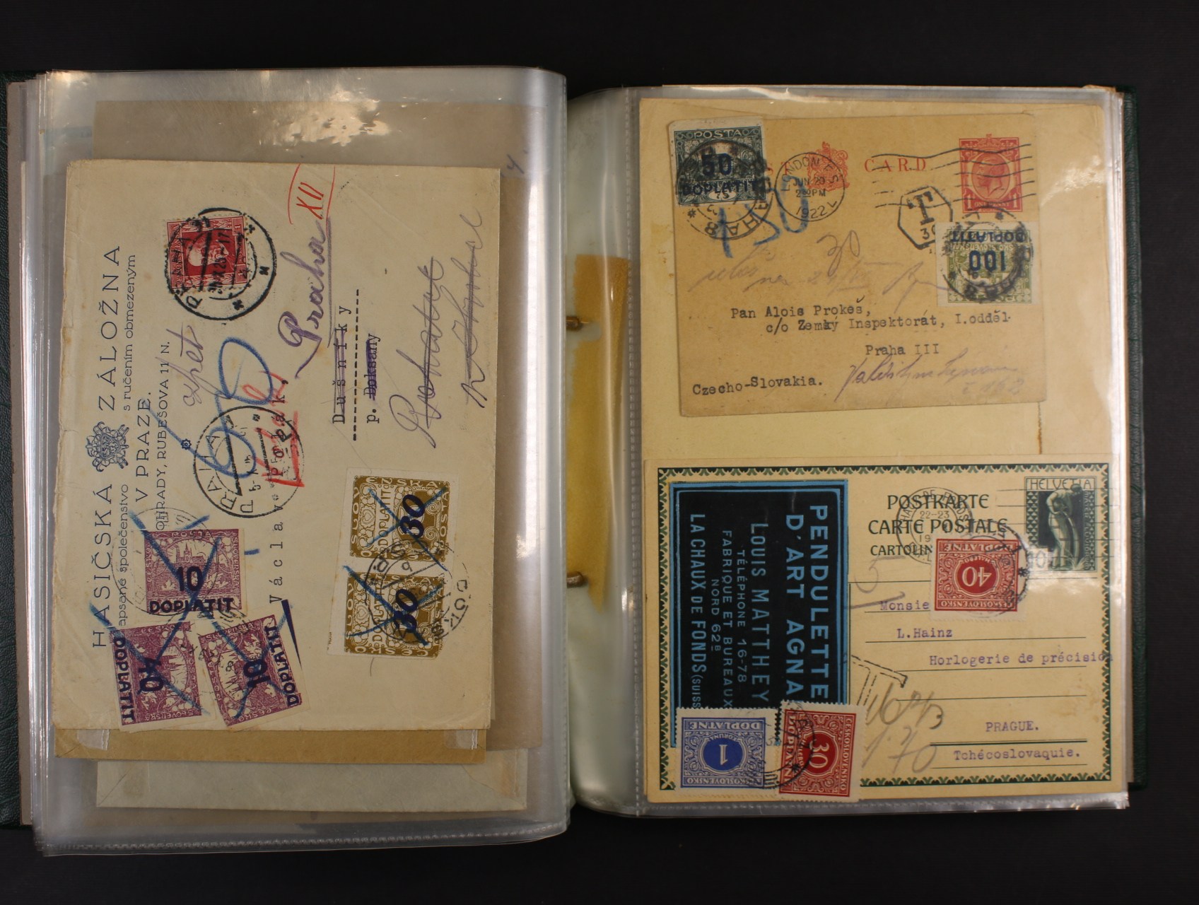 ČSR I - sbírka cca 90 ks celistvostí z let 1918 - 1939 dofrank. dopl. známkami, zaslanými do ČSR i do ciziny, zajímavé frankatury, provizoria, razítka, zajímavé, k prohlédnutí, uloženo v zeleném zásobníku na dopisy
