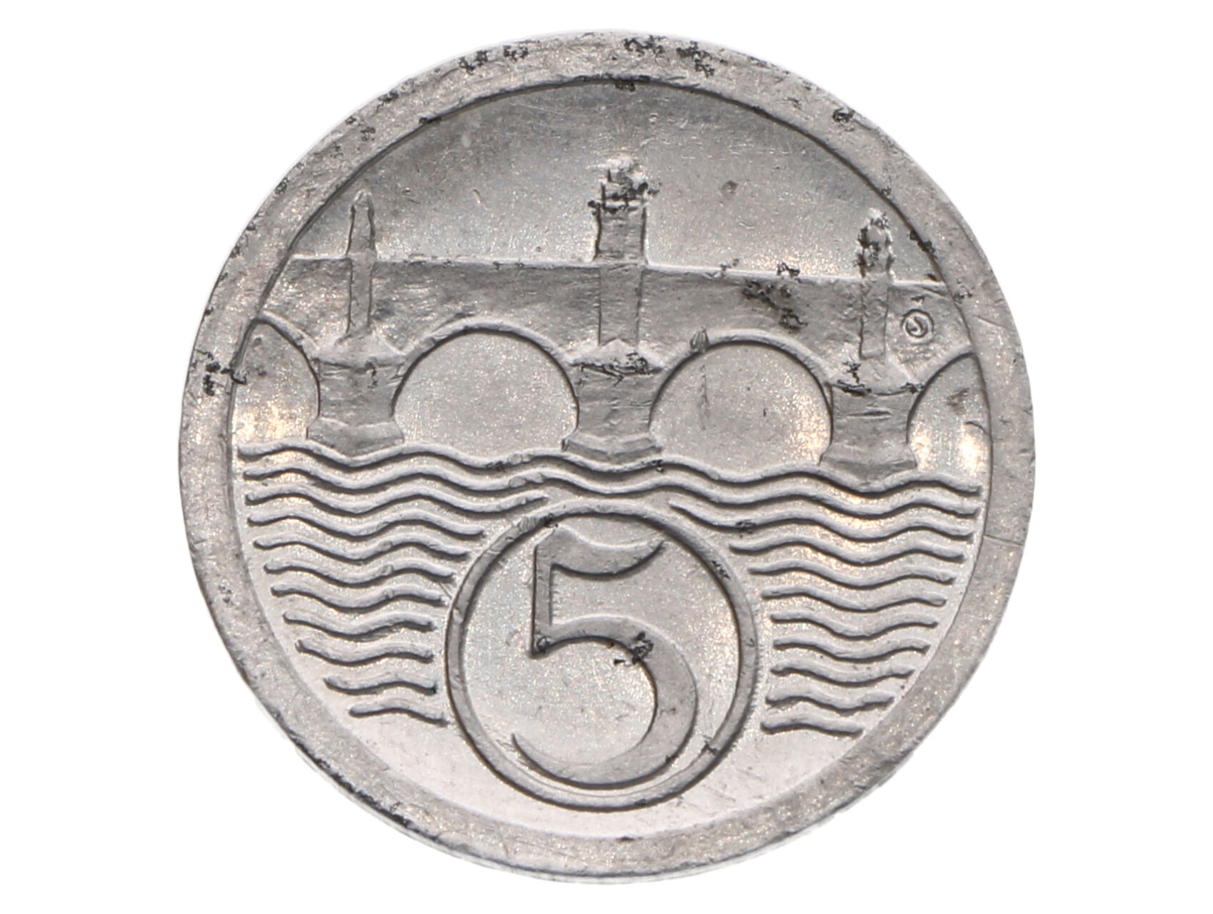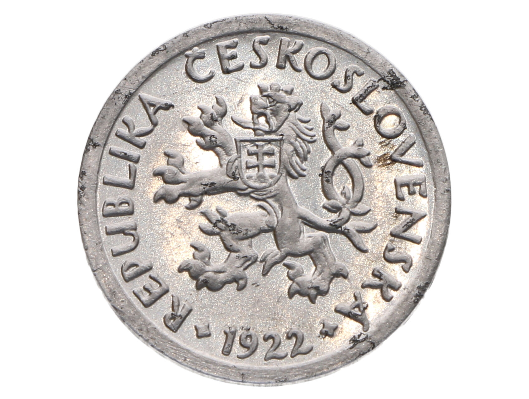 ČSSR 1945-1953 - 5 Haléř 1922, zkušební ražba Kremnica, průměr 20 mm, Al, O.Španiel, první odražek v návrhu měnové soustavy 1945, Chlapovič 73, 140, velmi vzácný