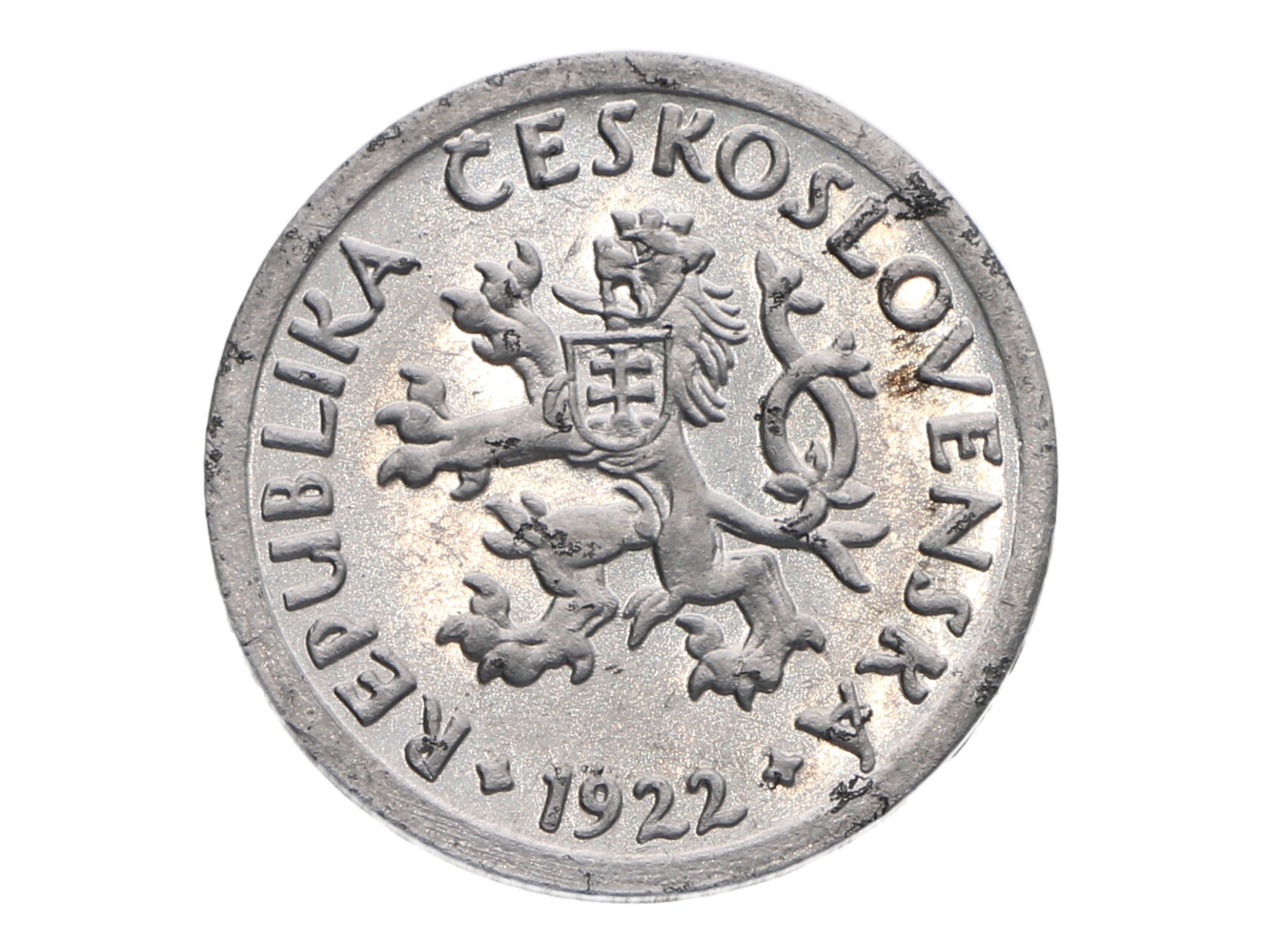 ČSSR 1945-1953 - 5 Haléř 1922, zkušební ražba Kremnica, průměr 20 mm, Al, O.Španiel, první odražek v návrhu měnové soustavy 1945, Chlapovič 73, 140, velmi vzácný, posudek pravosti