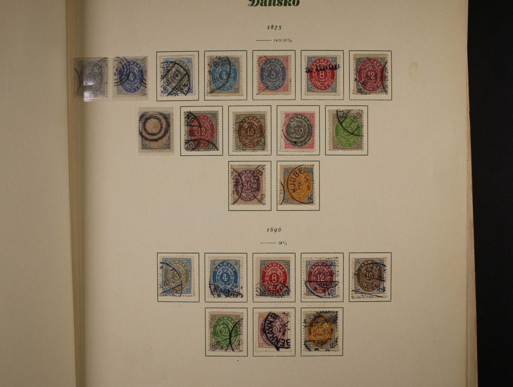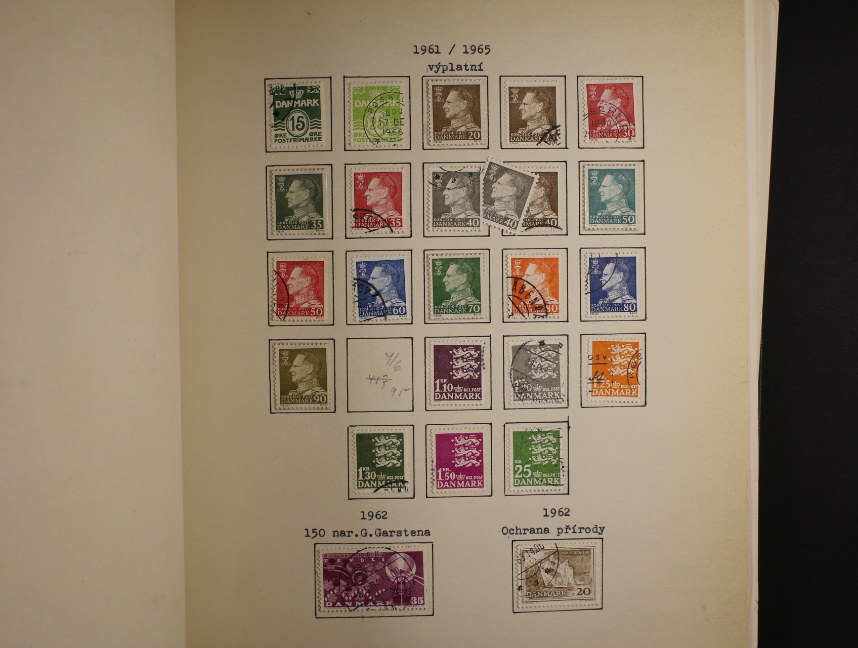 Dánsko - větší nekompl. sbírka zn. a celistvostí z let 1851 - 1980 obsahující mj. zn, Mi. č. 1, 3 - 9, 11 - 20, 60 - 62, 66, 143 - 5, 177 - 81, Verrechnungsmarken 1x - 10x, 1y - 8y, služební zn. 1 A - 3 A, kat. hodnota zn. do r. 1940 cca 4500 EUR, zn. po r. 1940 nezapočítány, uloženo na listech Stibůrek v pér. deskách