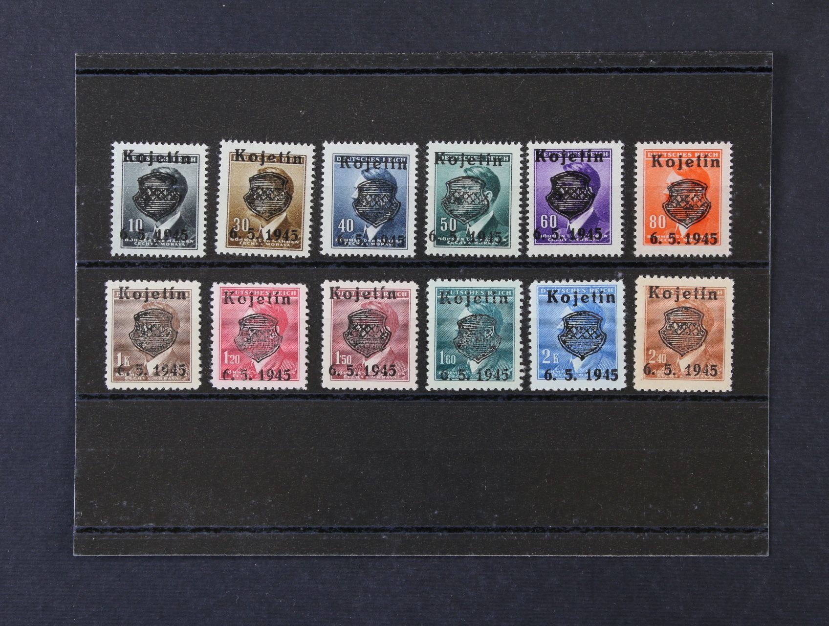 Kojetín III. - sestava 12ks protektor. zn. A. H., 1 zn. s nálepkou