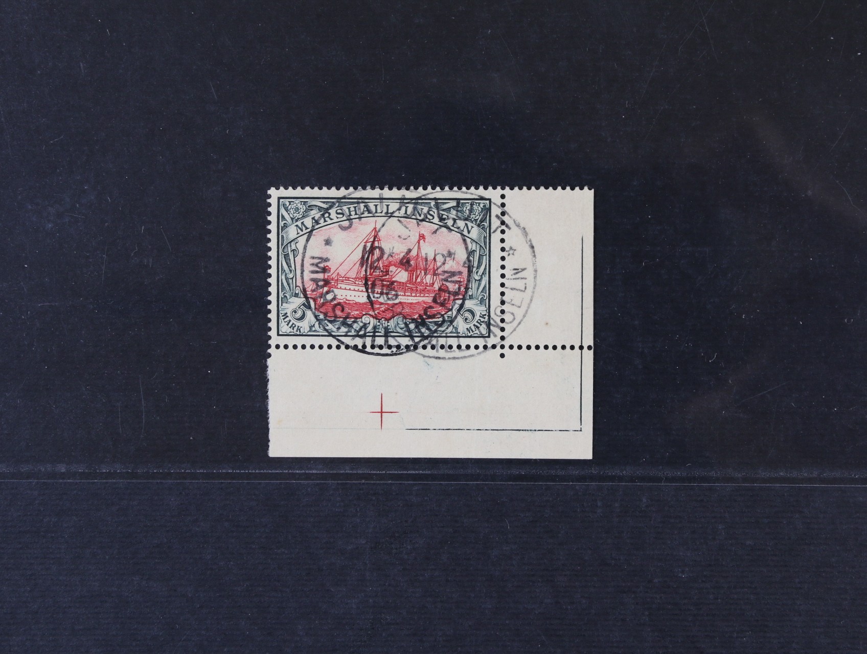 • kolonie  Marschall – Inseln - zn. Mi. č. 25, Jachta 5RM bez průsvitky, levý spodní ROHOVÝ KUS, raz. JALUIT 12.4.06, kat. 600 EUR ++