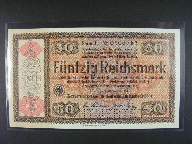 • Konversionskasse, 50 RM 28.8.1933(1934), serie D, perf. ENTWERTET, Ro.712, vysoky nominal !