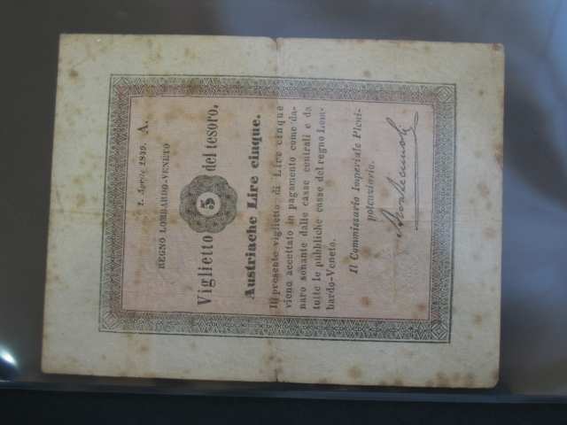 • Lombardsko - Benátsko, 5 Lire 1.4.1849, Pi.-Ri. LV16, Pi. S197, skvrnky, velmi vzácné