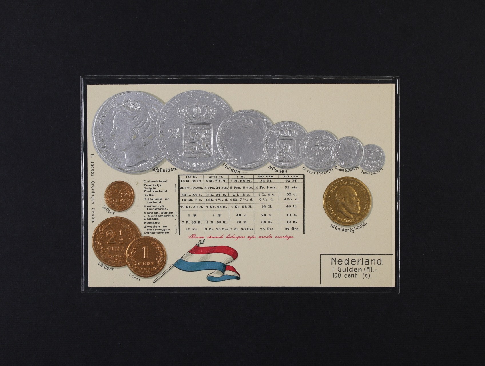 • Mince - Holandsko - bar. reliéfní litograf. koláž, dl. adresa, nepoužitá
