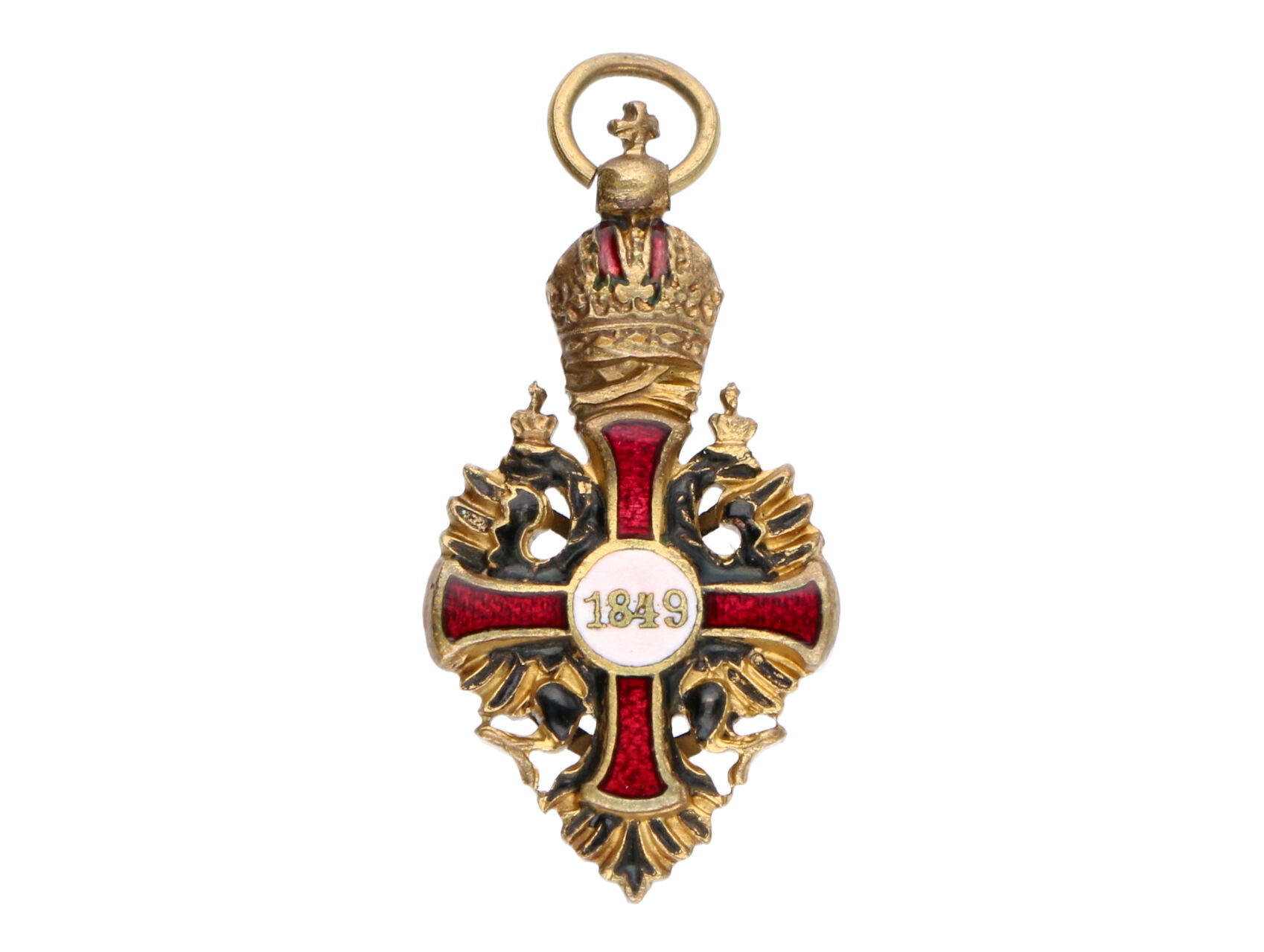 • Miniatura řádu Františka Josefa I., 29x15 mm, zlacený bronz, smalty, 4,12 g.
