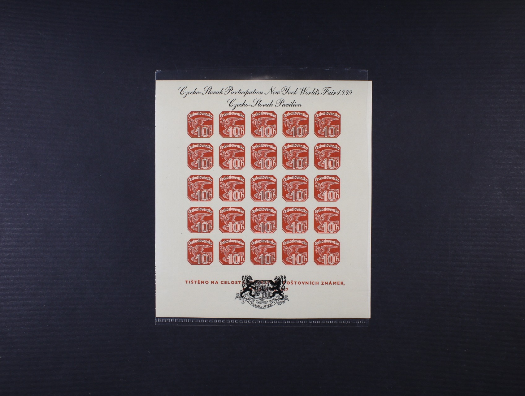 • novinový aršík A NV č. 19 s černým přítiskem pro výstavu NEW YORK 1939