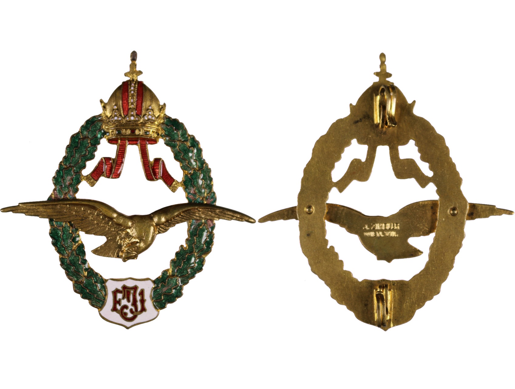 • Odznak Polní pilot, typ 1913, František Josef I., koruna s pendiliemi, bronz zlacený, smalty, značeno J. ZIMBLER WIEN, Marko495d