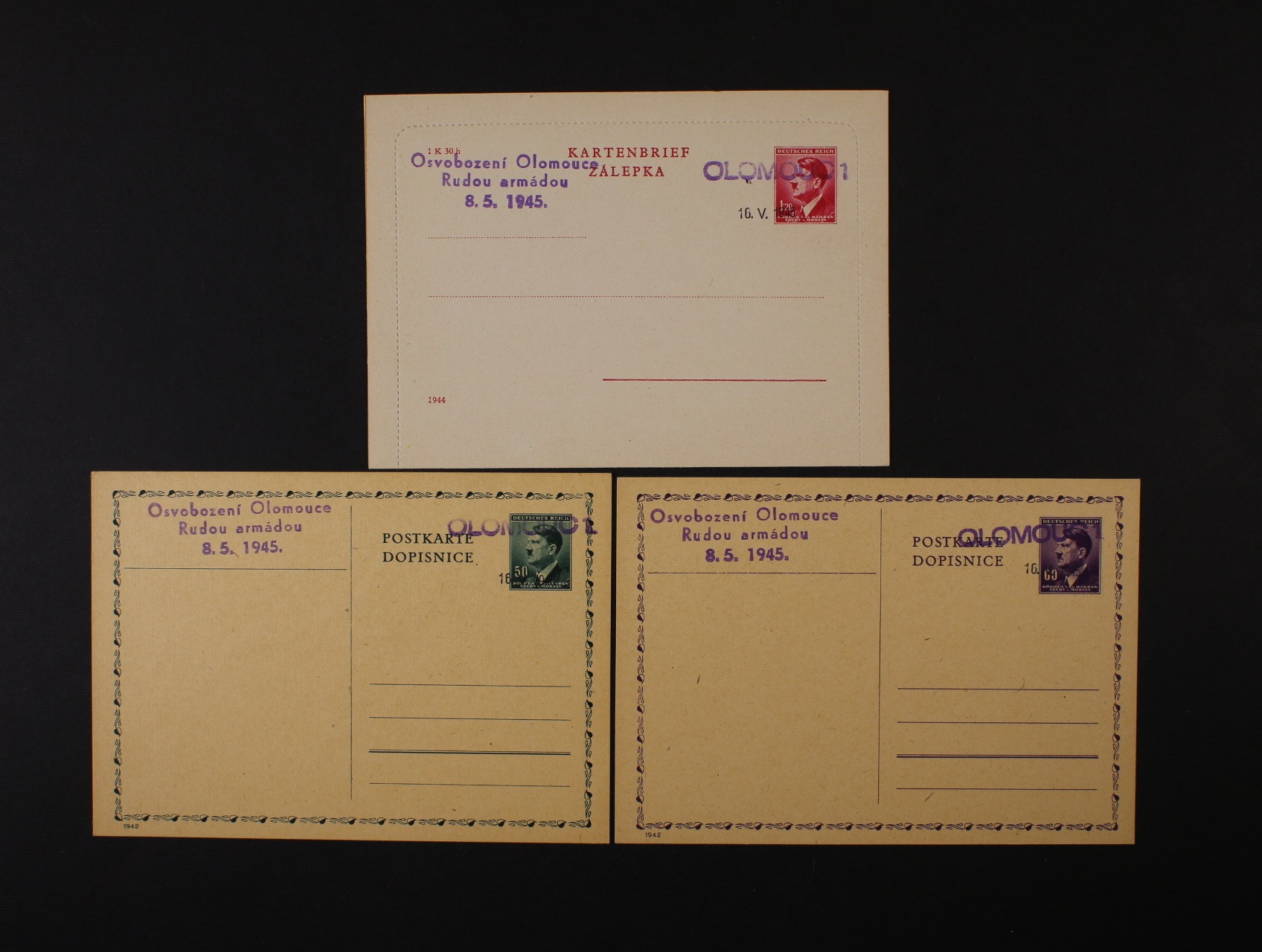 Olomouc CZL 4yb a CDV 15 a 16 s přetiskem Osvobození Olomouce ve fial. barvě