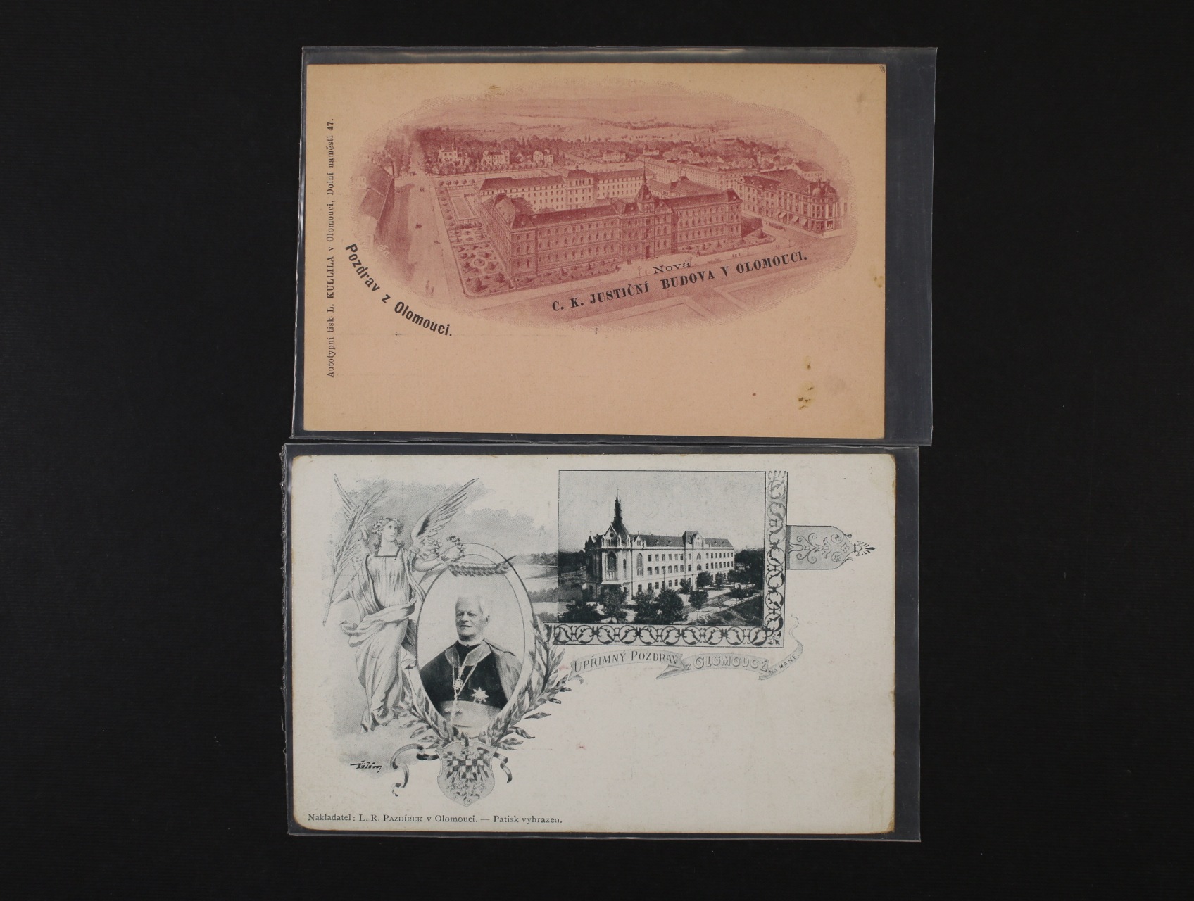 • Olomouc - jednobar. pohlednice C.K. justiční budova v Olomouci a jednobar. koláž, nepoužité